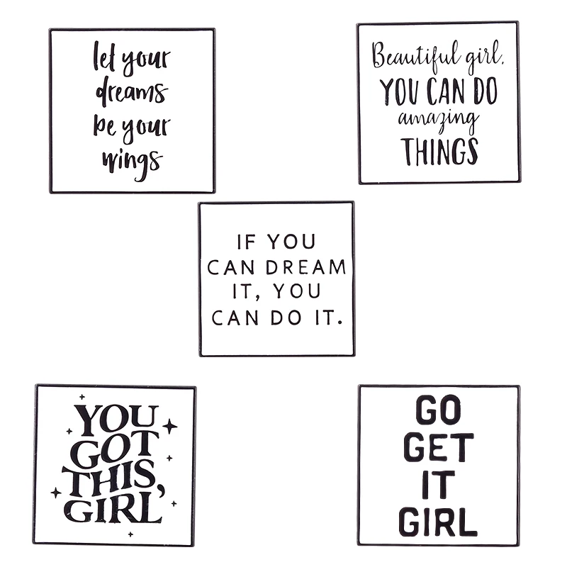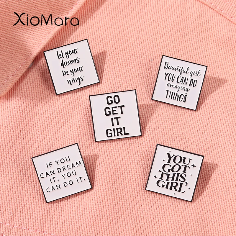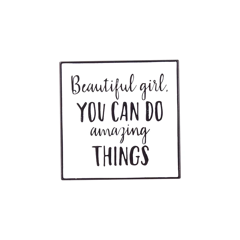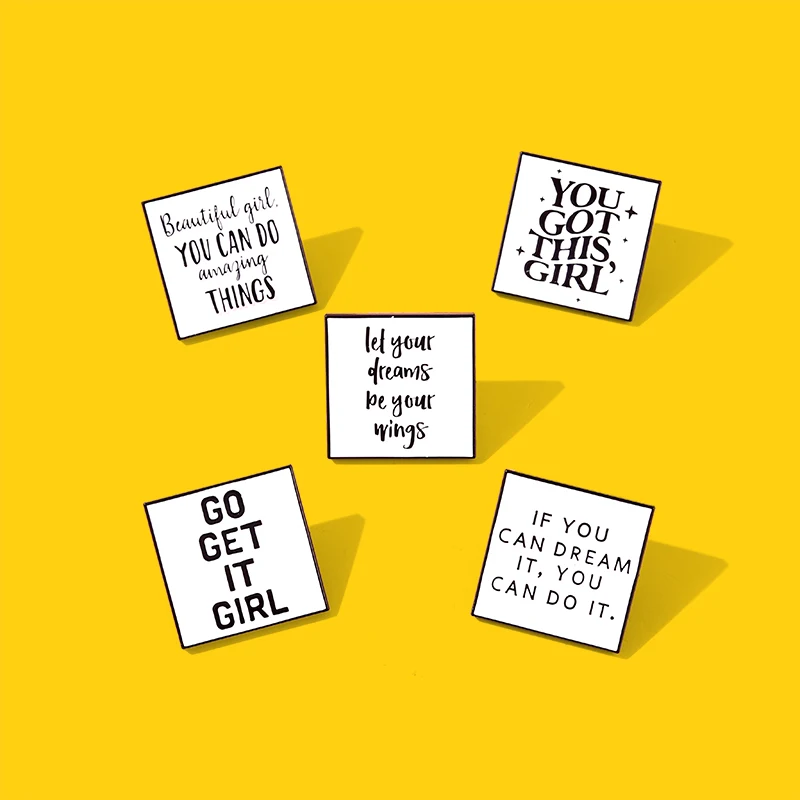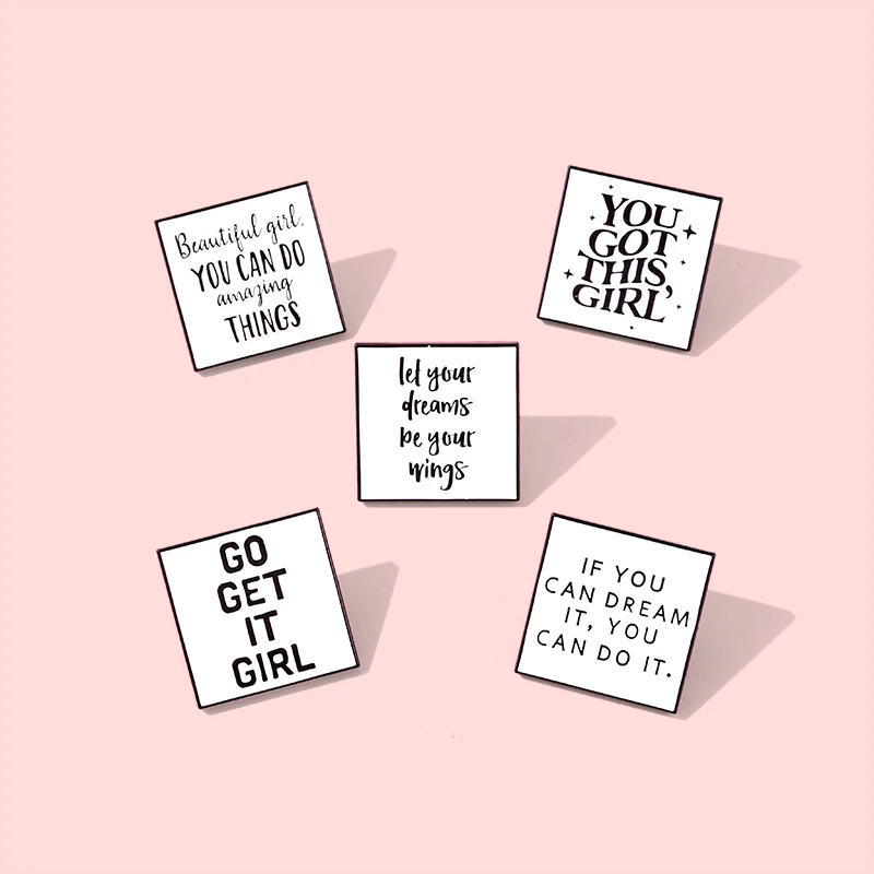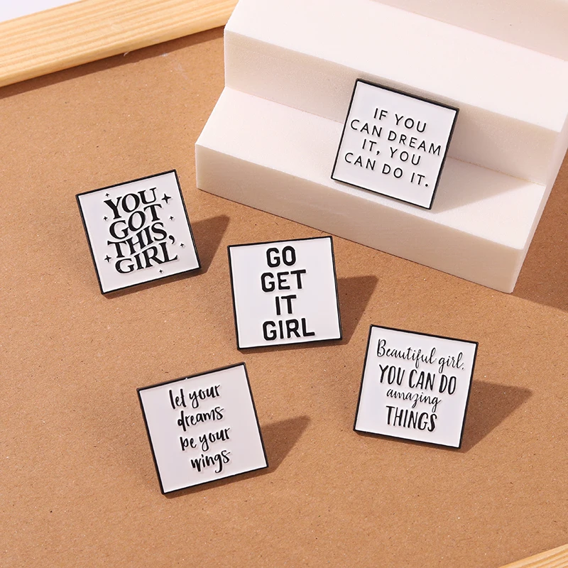 Эмалевые булавки для поддержки, Белая Квадратная брошь с цитатами н...