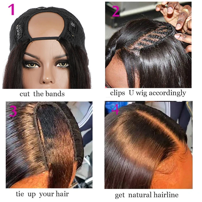 Парик с кудрявыми U-образными волосами, парики размера открытия 2x4...