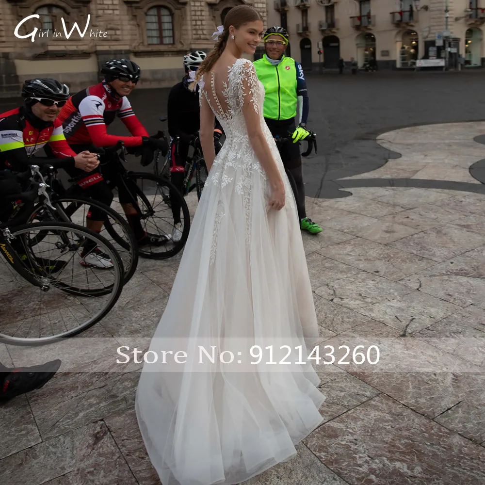 Сексуальные свадебные платья в стиле бохо с открытой спиной, Элегантное свадебное платье с кружевной аппликацией и длинным рукавом, ТРАПЕЦИЕВИДНОЕ платье невесты, свадебные платья