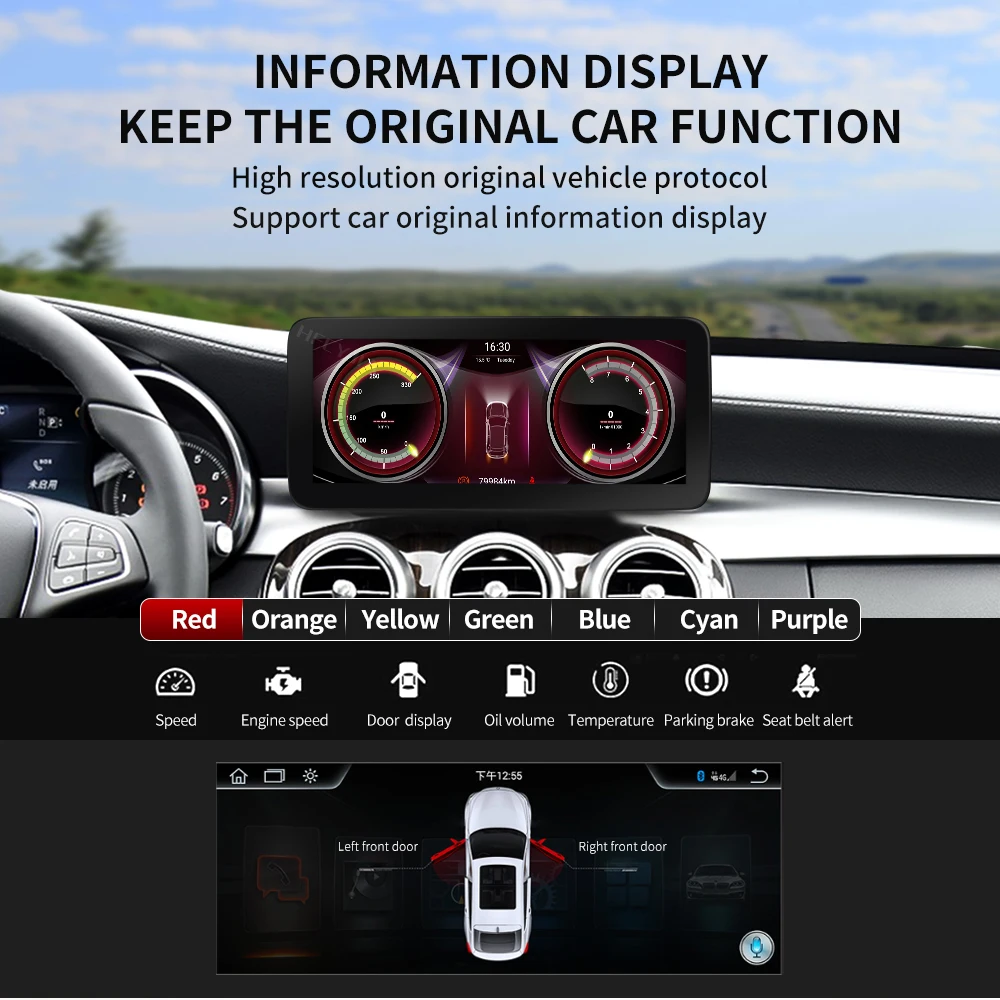 Функция: GPS Navi / Google / WIFI / 4G sim-карта/BT/беспроводной iphone Carplay и Android Авто/USB/музыка/видео/Зеркальное соединение/Управление рулевым колесом/Поддержка AHD / CVBS камеры видео/Поддержка оригинальной функции автомобиля/Цветная приборная панель