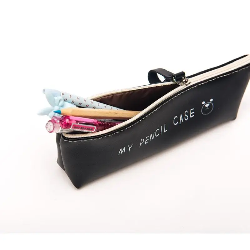 Новое поступление, однотонный треугольный чехол-карандаш My Pencil, классический черный и белый водостойкий Чехол из искусственной кожи для хранения косметических карандашей