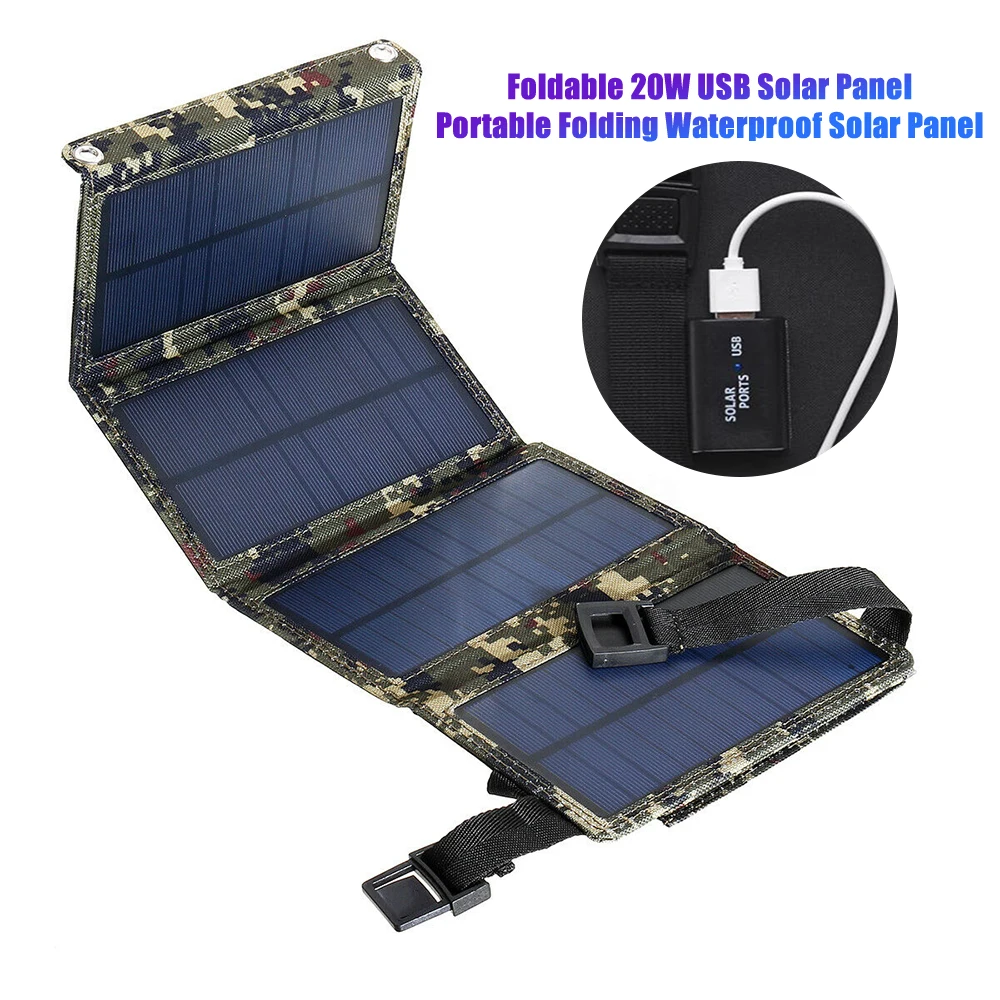 Солнечная панель 20Вт, 5В, водонепроницаемая, USB-разъем, складная