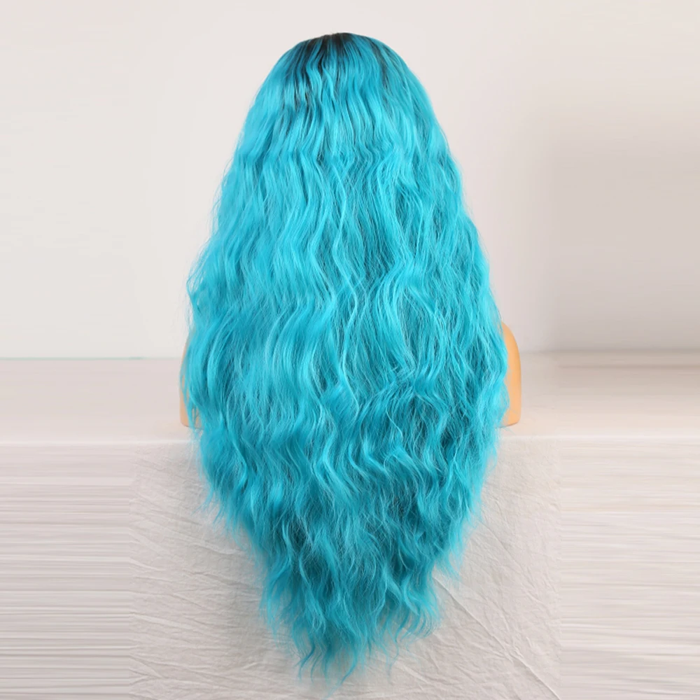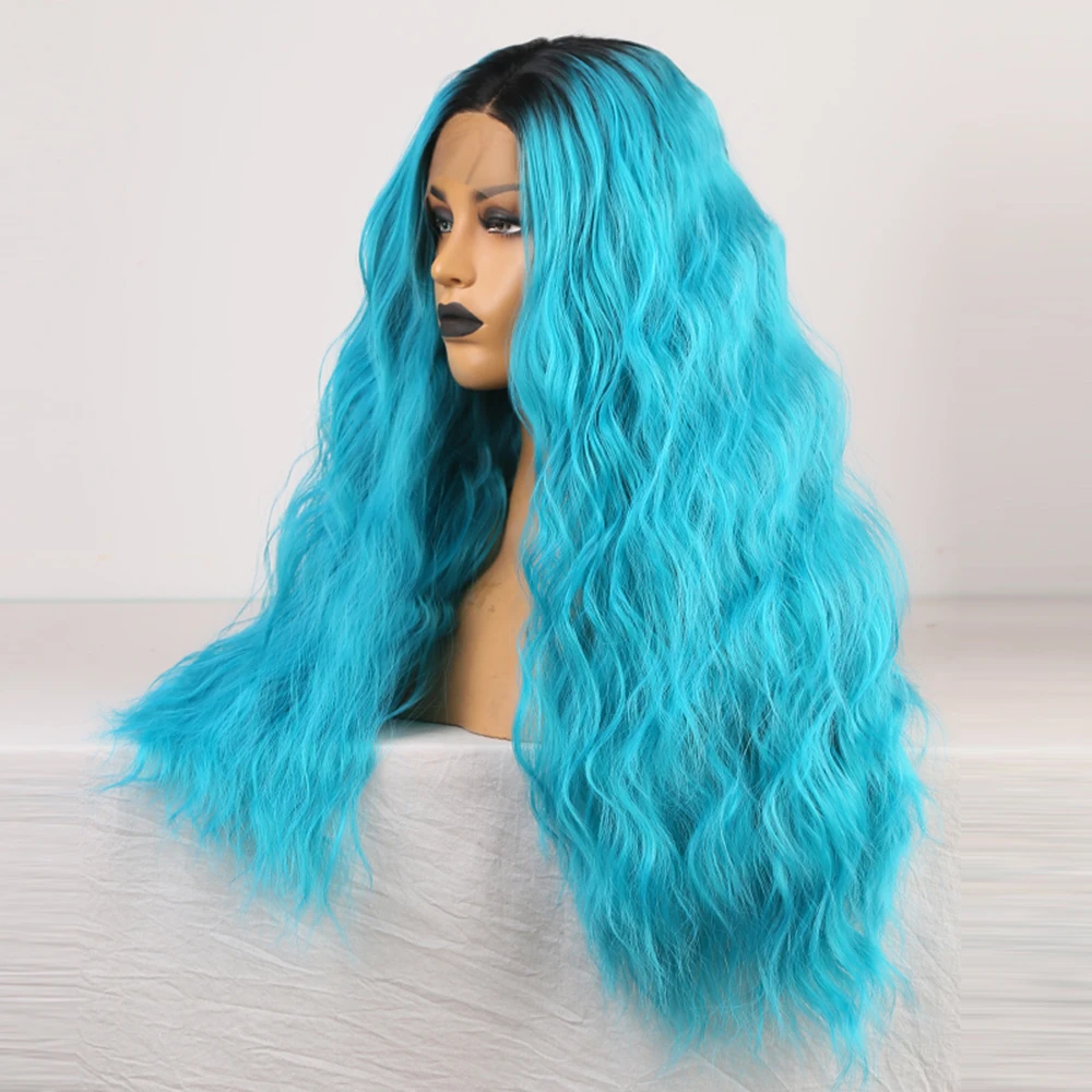 Харизма, волнистый парик на сетке спереди, синтетические волосы, Омбре, синие парики на сетке спереди, термостойкие волоконные парики на сетке для чернокожих женщин