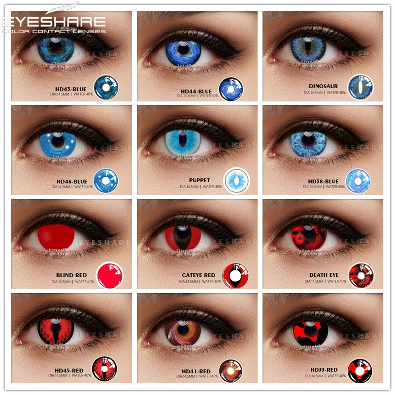 EYESHARE Аниме Косплей Контактные линзы 2 пары синий красный цвет Contactlen для Хэллоуина Eyecontact Lentes цвет ed Eye КОНТАКТЫ