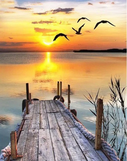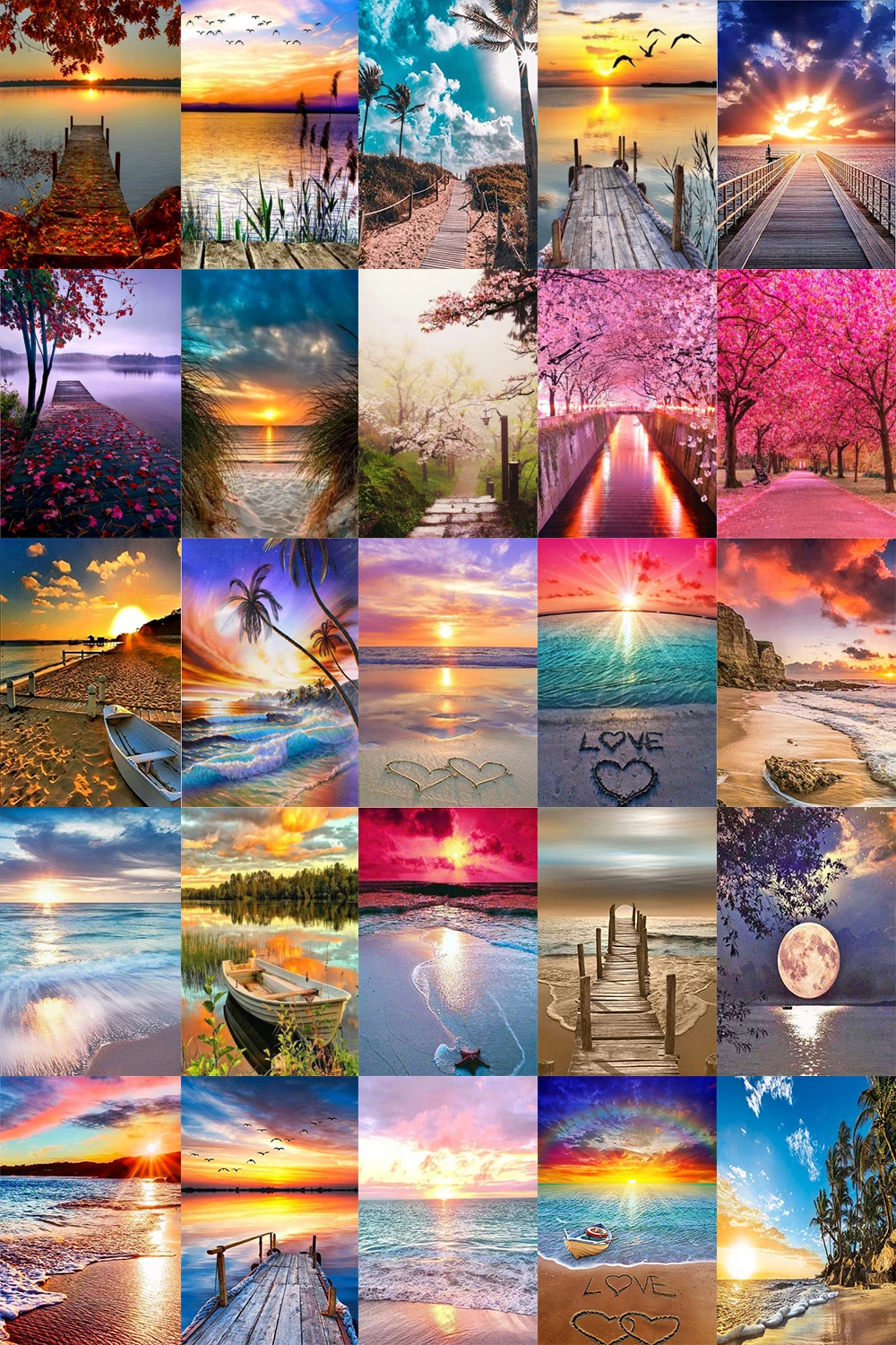 5D алмазная живопись, пейзаж, закат, морской пейзаж, круглая стразы...
