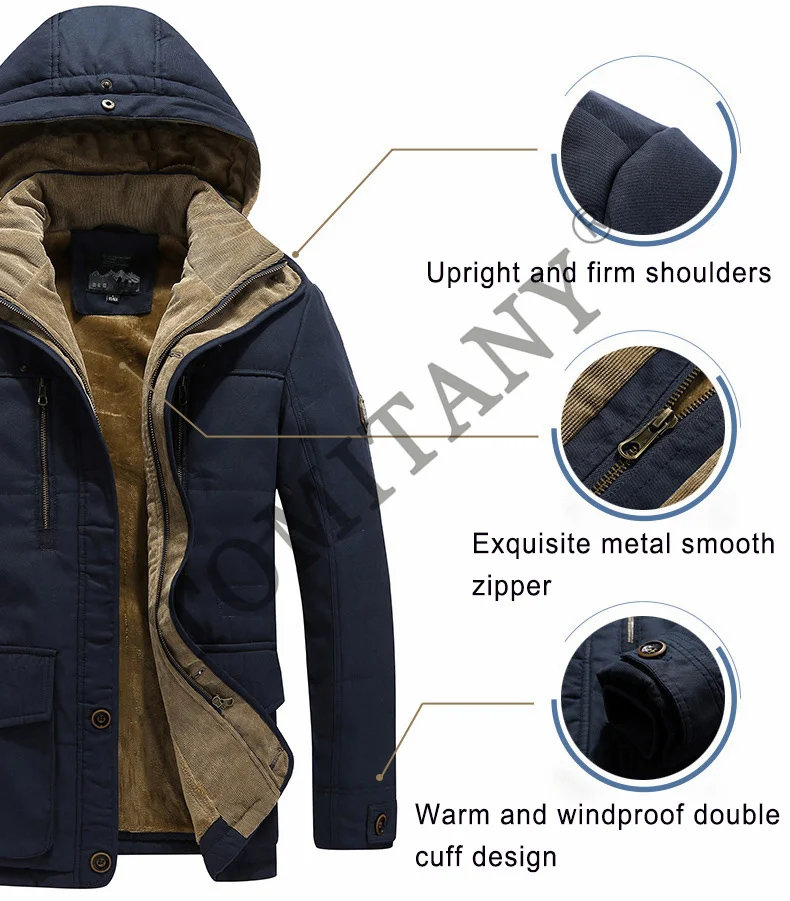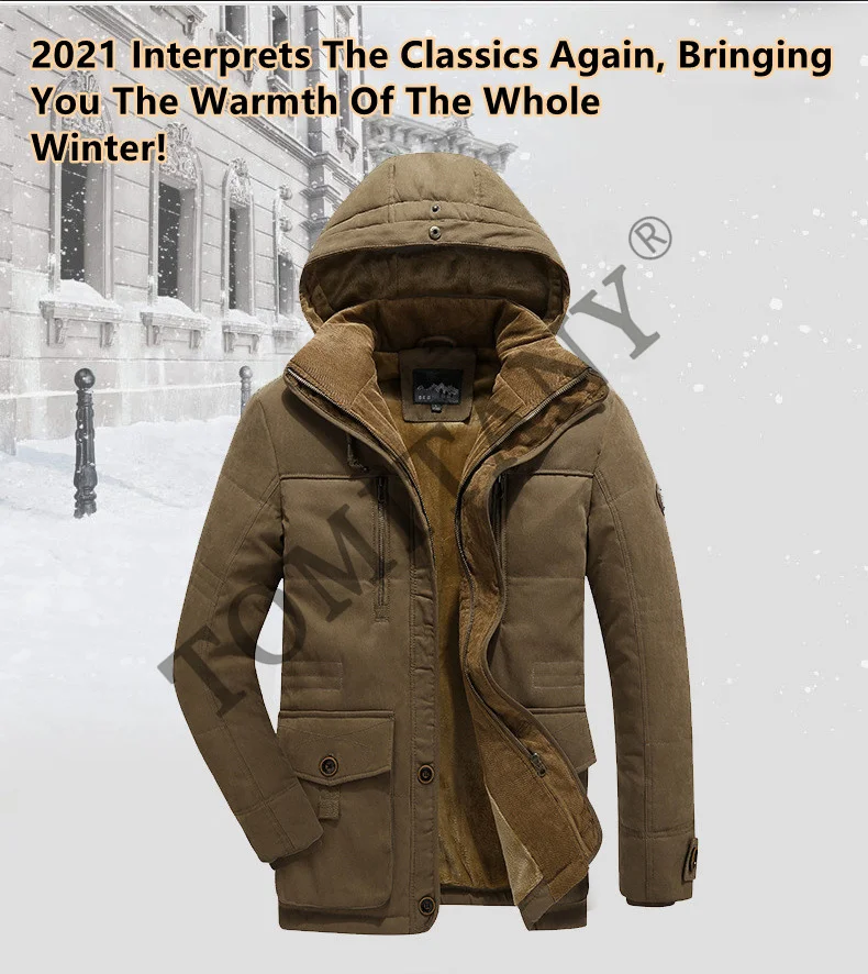 Модель 8XL, Зимняя Мужская парка с капюшоном, утепленная куртка с меховым ворсом, мужское повседневное пальто, пальто со съемной шапкой, мужская куртка