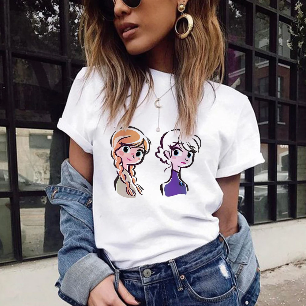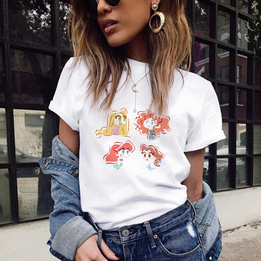 Футболка женская с коротким рукавом, мультяшный рисунок принцессы ж...