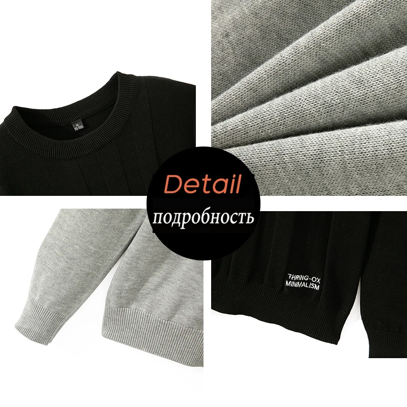 Свитер мужской зимний, теплый, с круглым вырезом, Осень-зима 2021