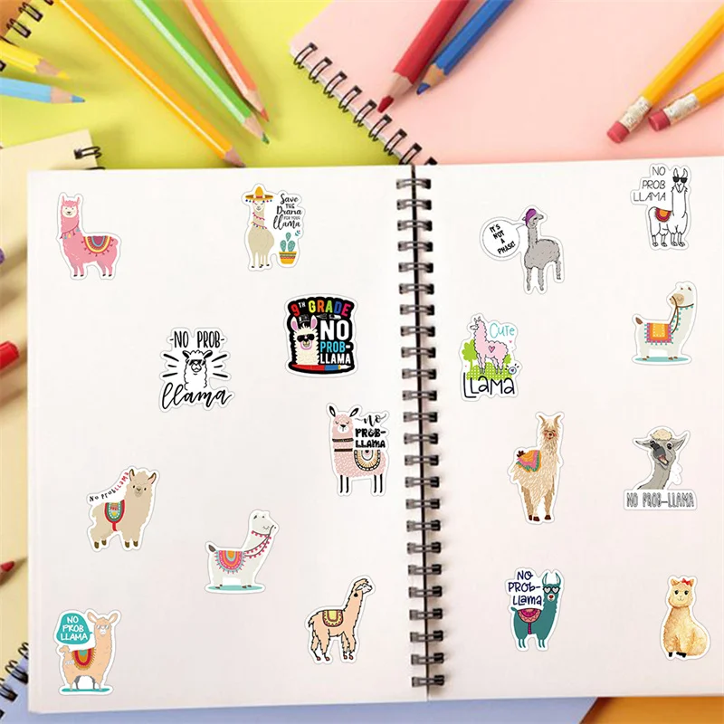 50 шт., милые наклейки с животными, лама, верблюд, милый мультяшный...