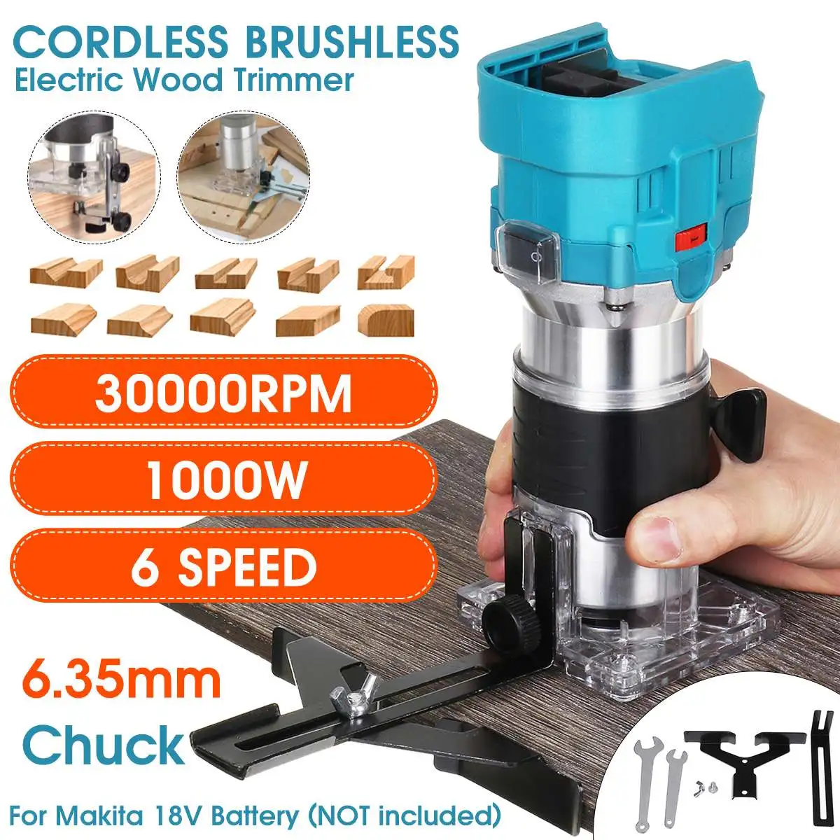 Беспроводной электрический бесщеточный триммер, 6 скоростей, ручная гравировка, долбежная резьба, обрезка, деревообрабатывающий фрезерный станок для Makita с аккумулятором 18 в