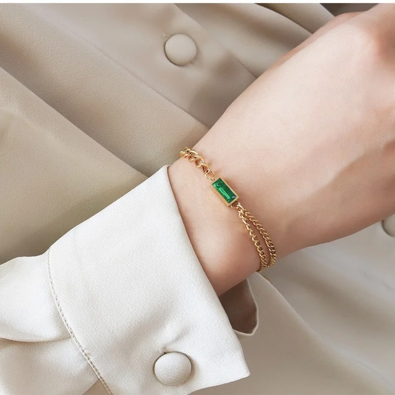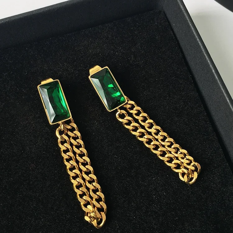 Ожерелье с геометрической цепочкой из зеленого циркона, чокер золотого цвета, короткое колье до ключиц для женщин, вечерняя бижутерия, хороший подарок