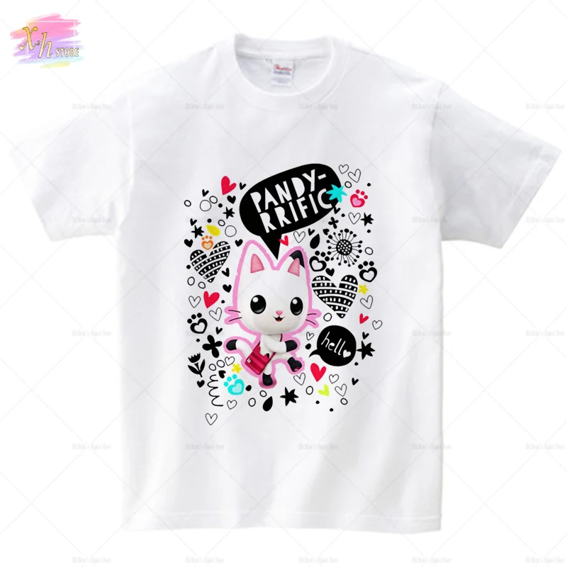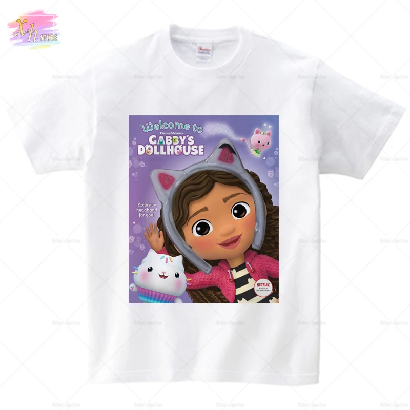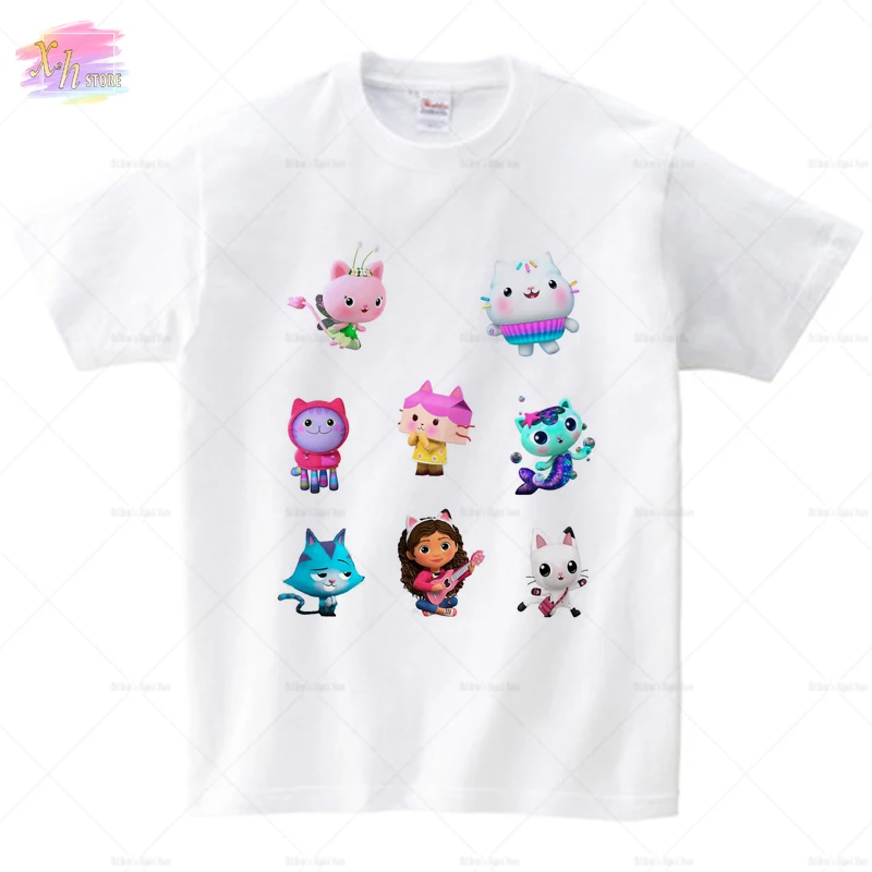 Детская футболка с кошками Gabby для мальчиков 2021 Летняя одежда топы для девочек футболки с коротким рукавом для кукольного домика Gabbys Рождественская детская одежда