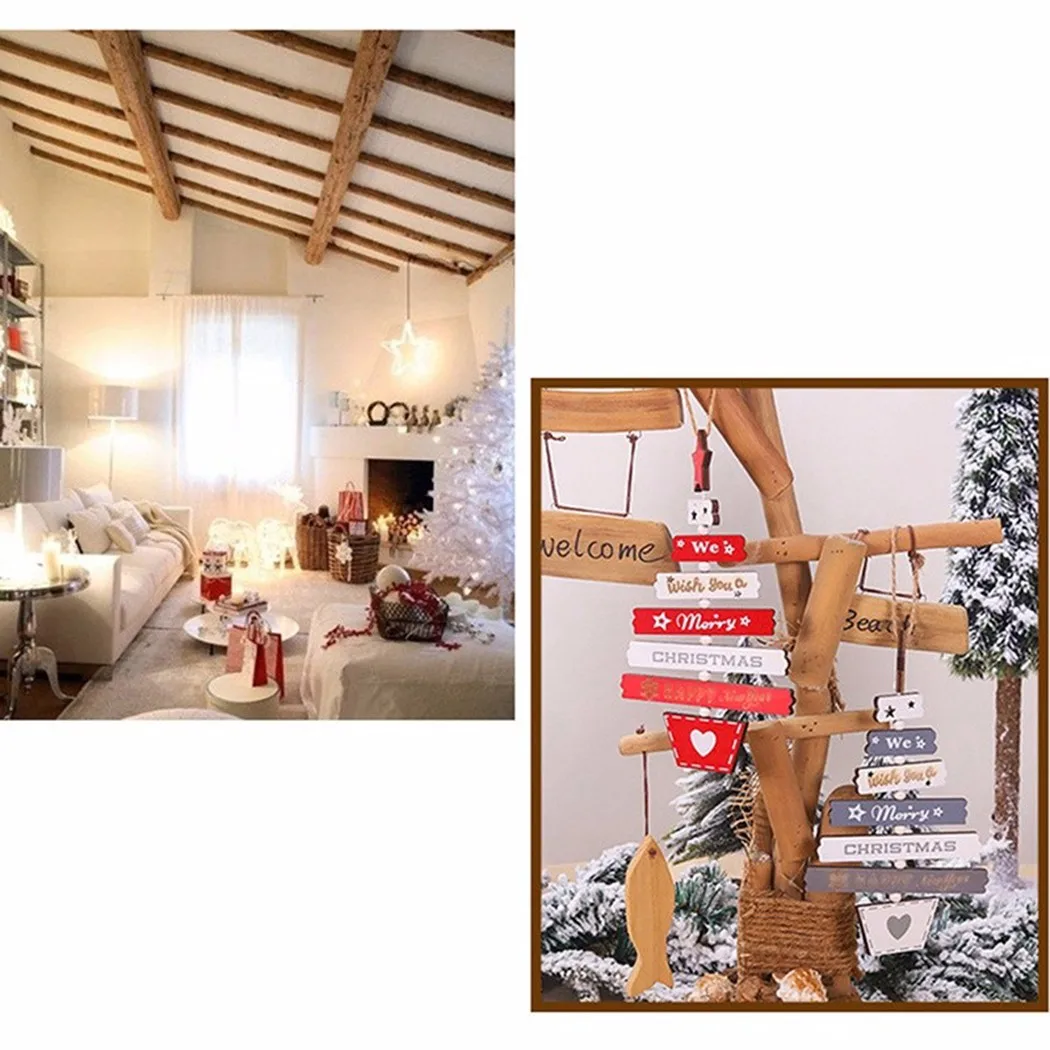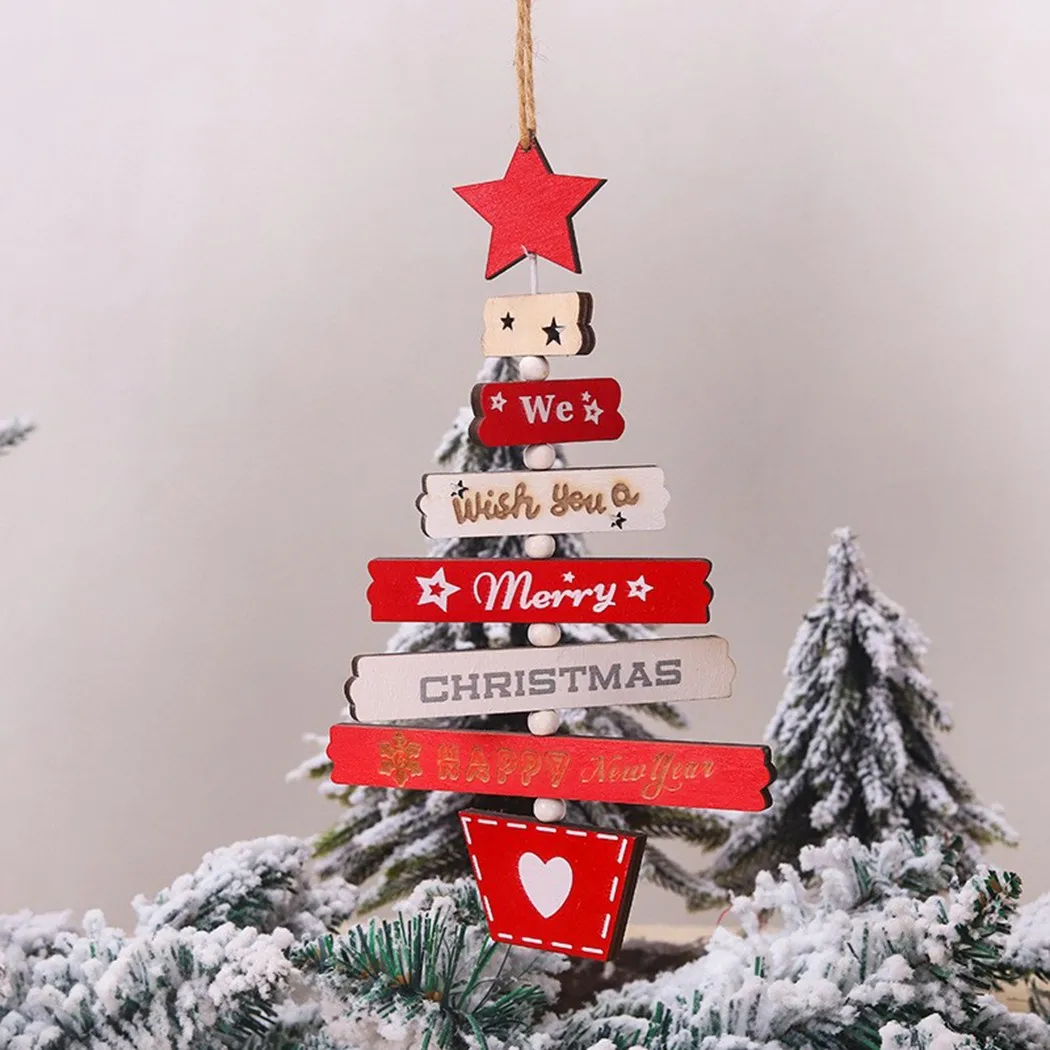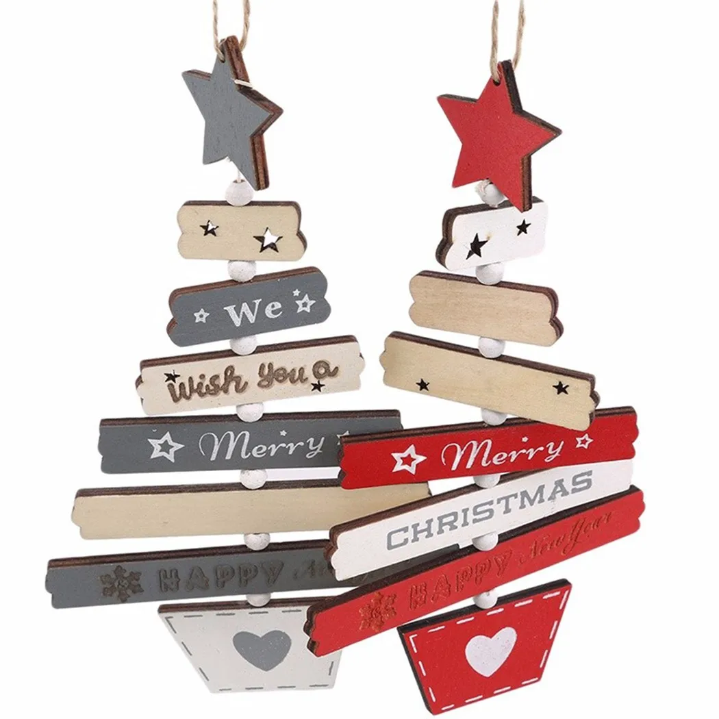 Деревянная новогодняя елка украшения, рождественские украшения, деревянная подвеска с буквами, коричневые, красные, серые, розовые подвесные украшения на Рождество