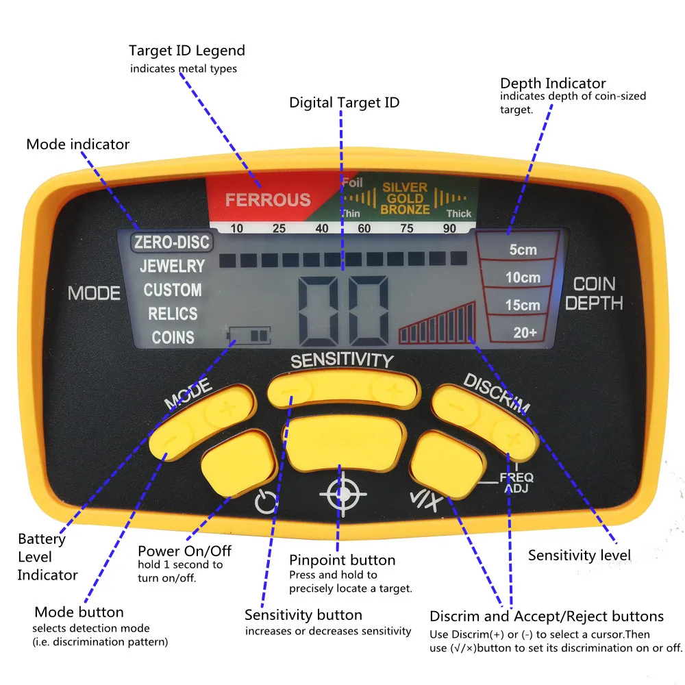 Особенности:Регулируемый стержень позволяет регулировать длину детектора для комфортного использования.Интерфейс ЖК-дисплея более четкий и быстрый для чтения данных.С разъемом для наушников, позволяет подключать стерео наушники и работать без проблем.Благодаря захвату и локоть, которые позволяют удобно носить с собой и управлять вашим детектором, чтобы убедиться, что этот детектор прост для людей разных размеров, возрастов.Подходит для поиска и тестирования металлических предметов, золотых и серебряных ювелирных изделий, монет, реликвий и т. д. независимо от того, являетесь ли вы начинающим охотником за сокровищами или опытным любителем обнаружения металла, вы можете легко использовать его.