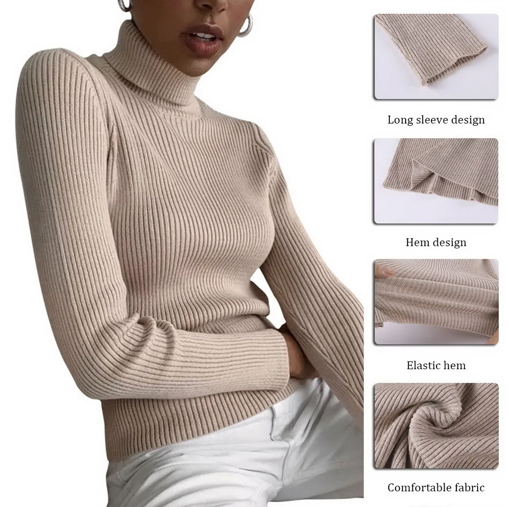 Осенне-зимние новые женские базовые однотонные вязаные теплые свитера с высоким воротником женские элегантные пуловеры праздничные минималистичные Топы