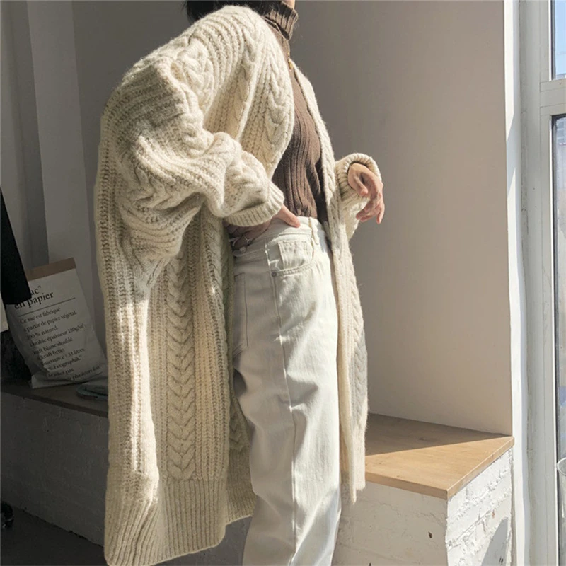 Женский вязаный кардиган в стиле ретро, осенне-зимний плотный Свобо...