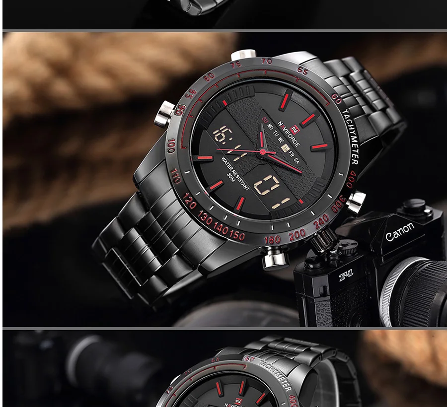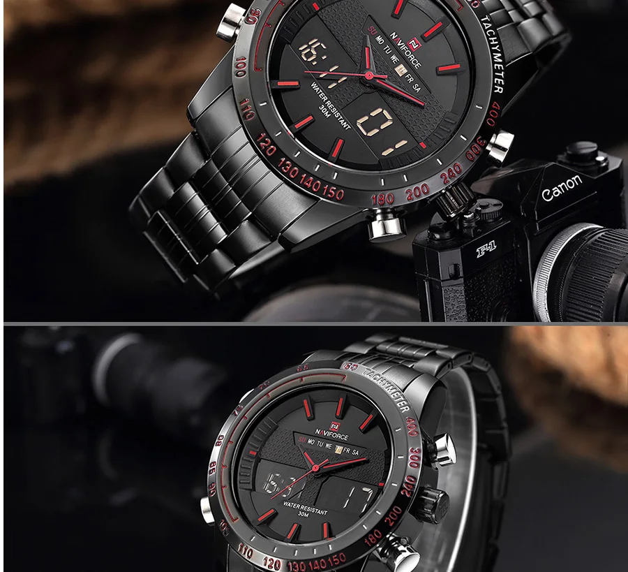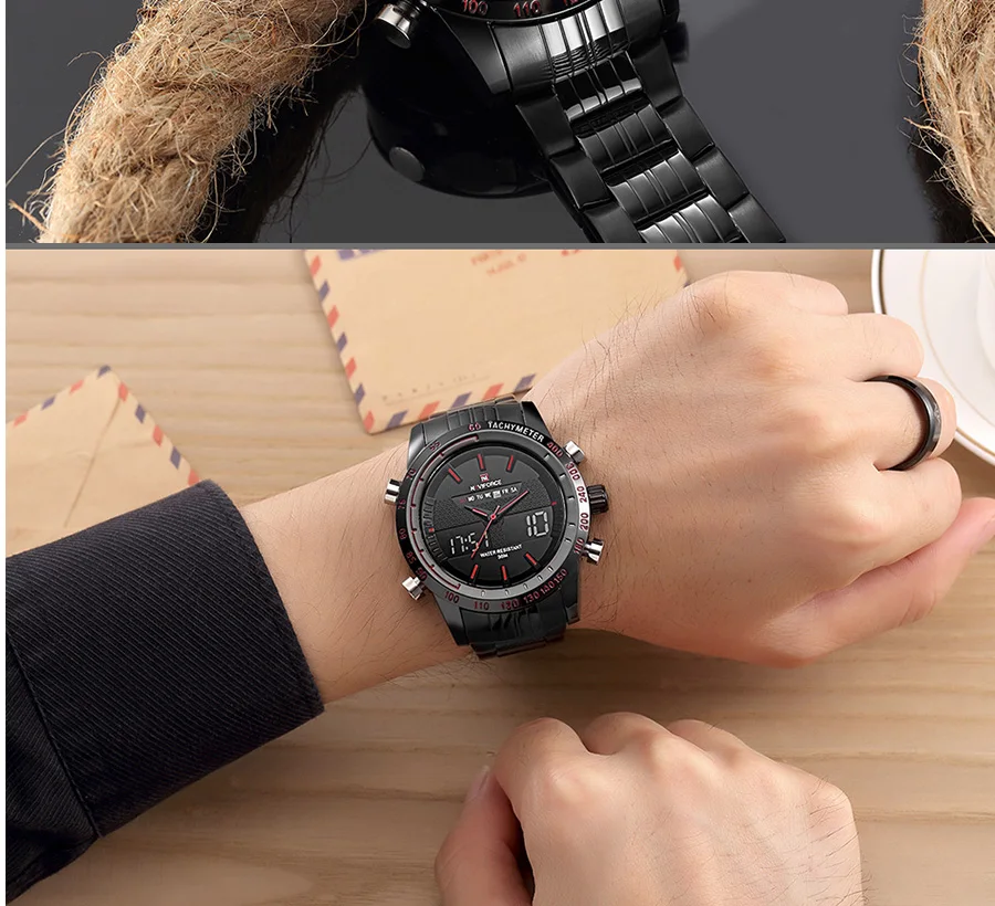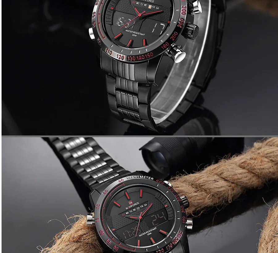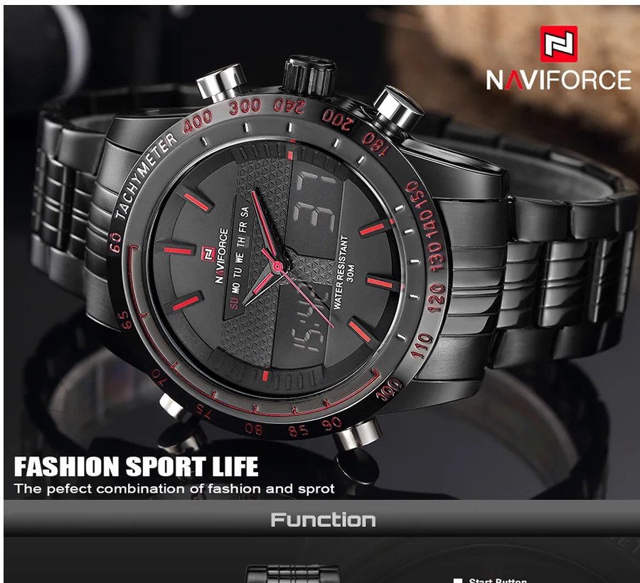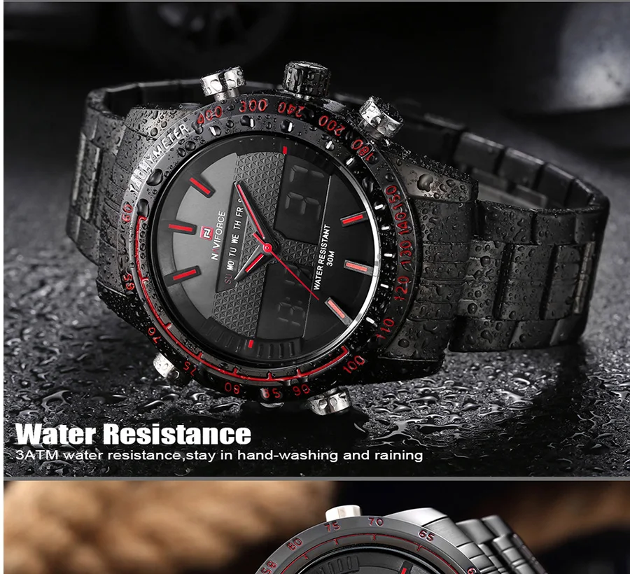 Часы наручные NAVIFORCE Мужские кварцевые, роскошные брендовые модные спортивные цифровые аналоговые полностью стальные
