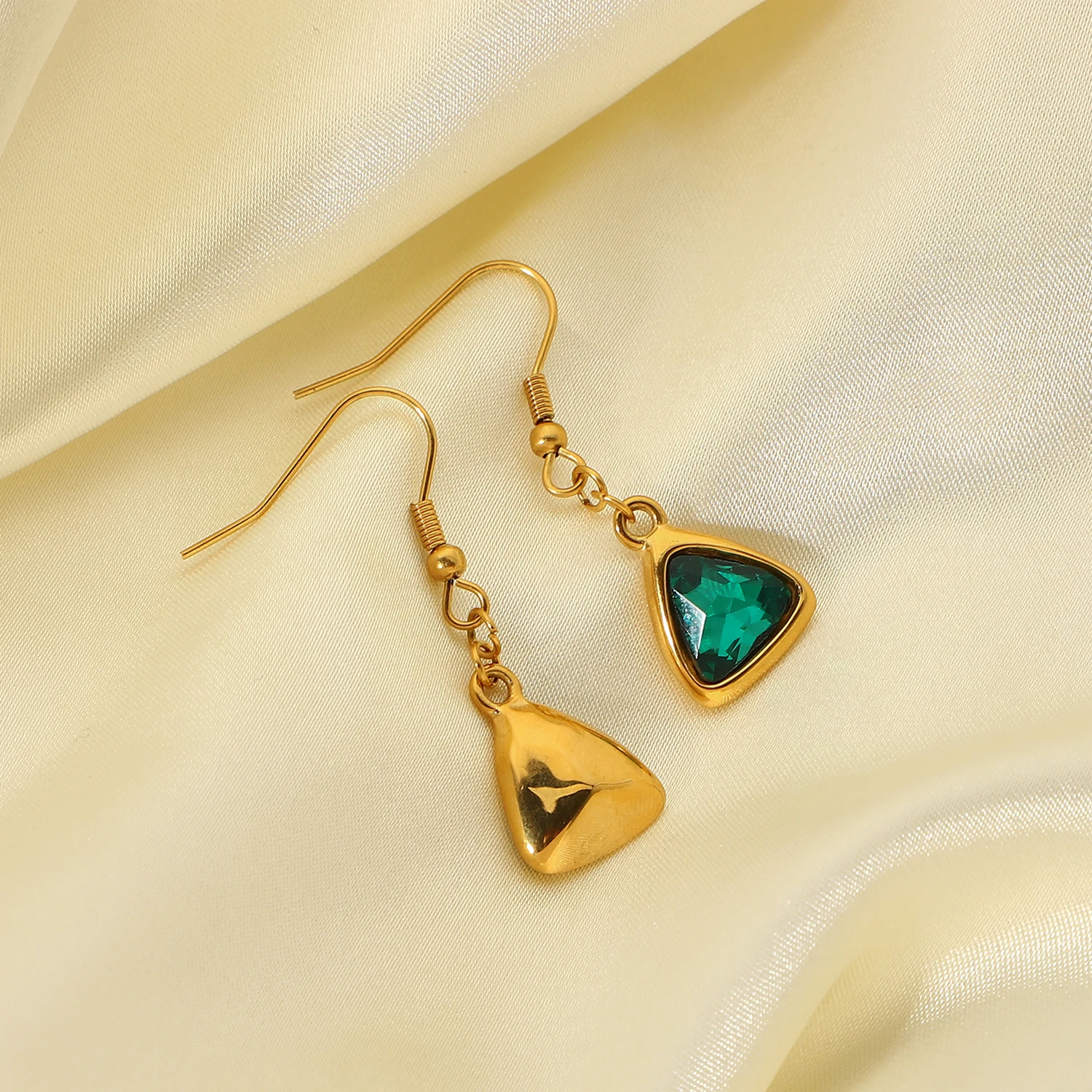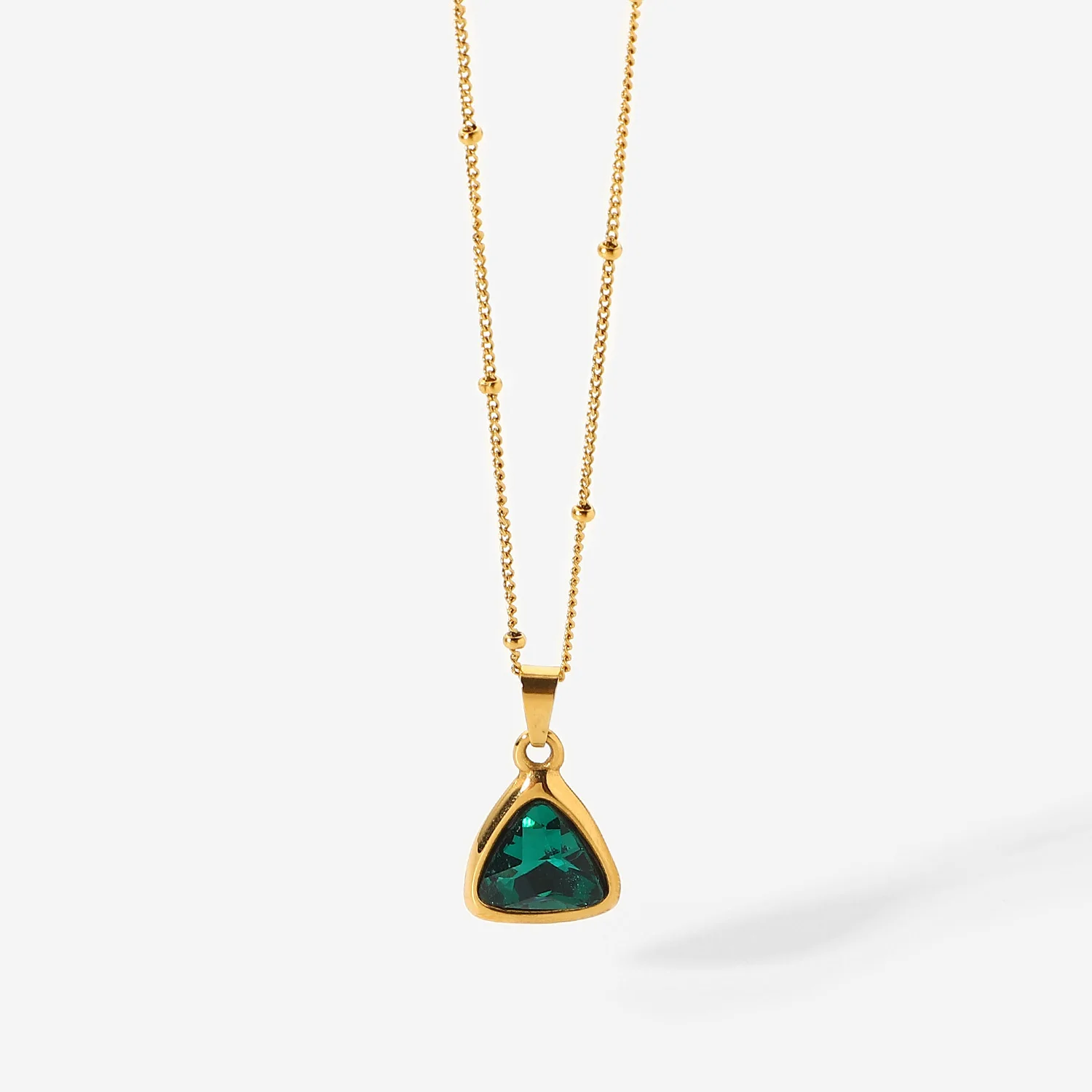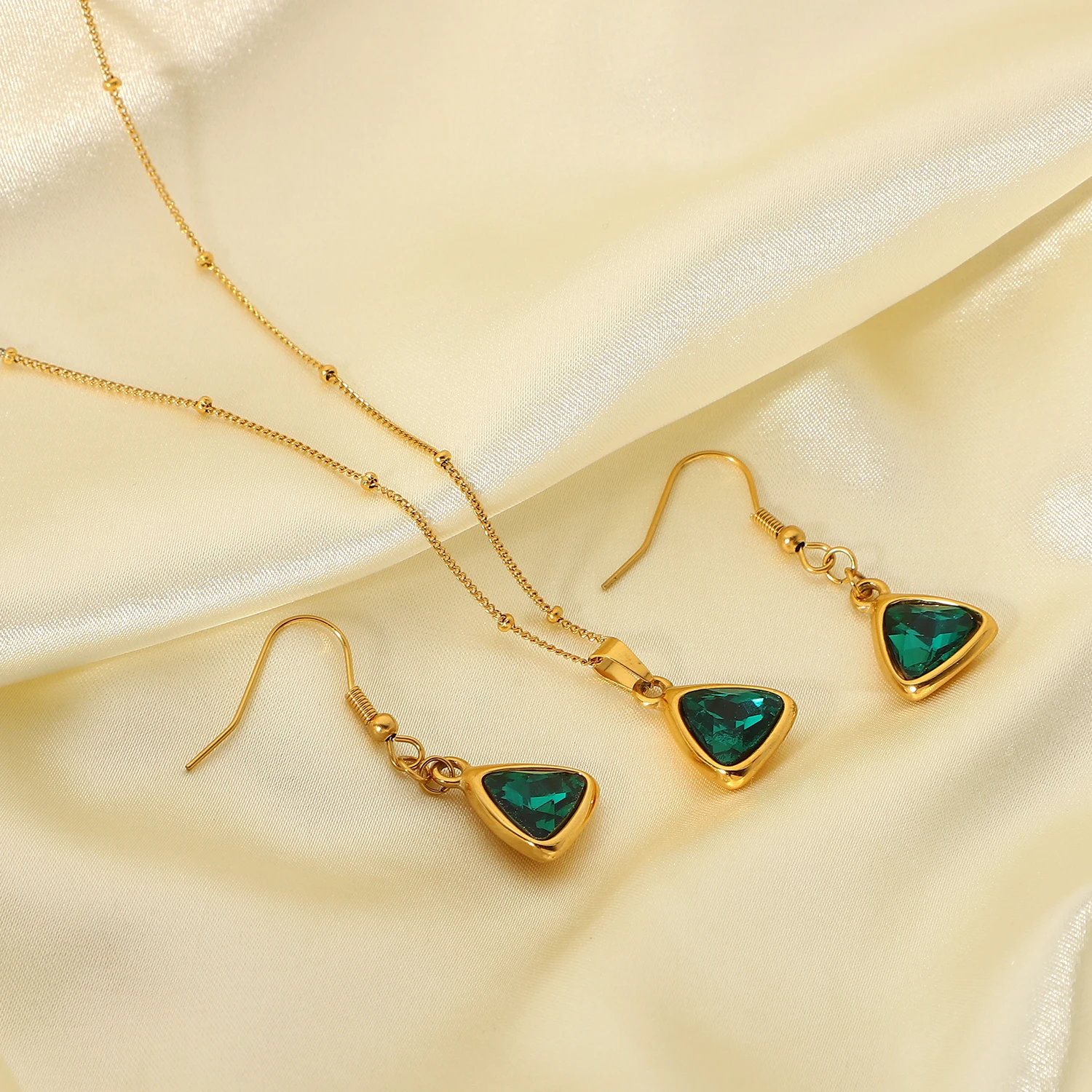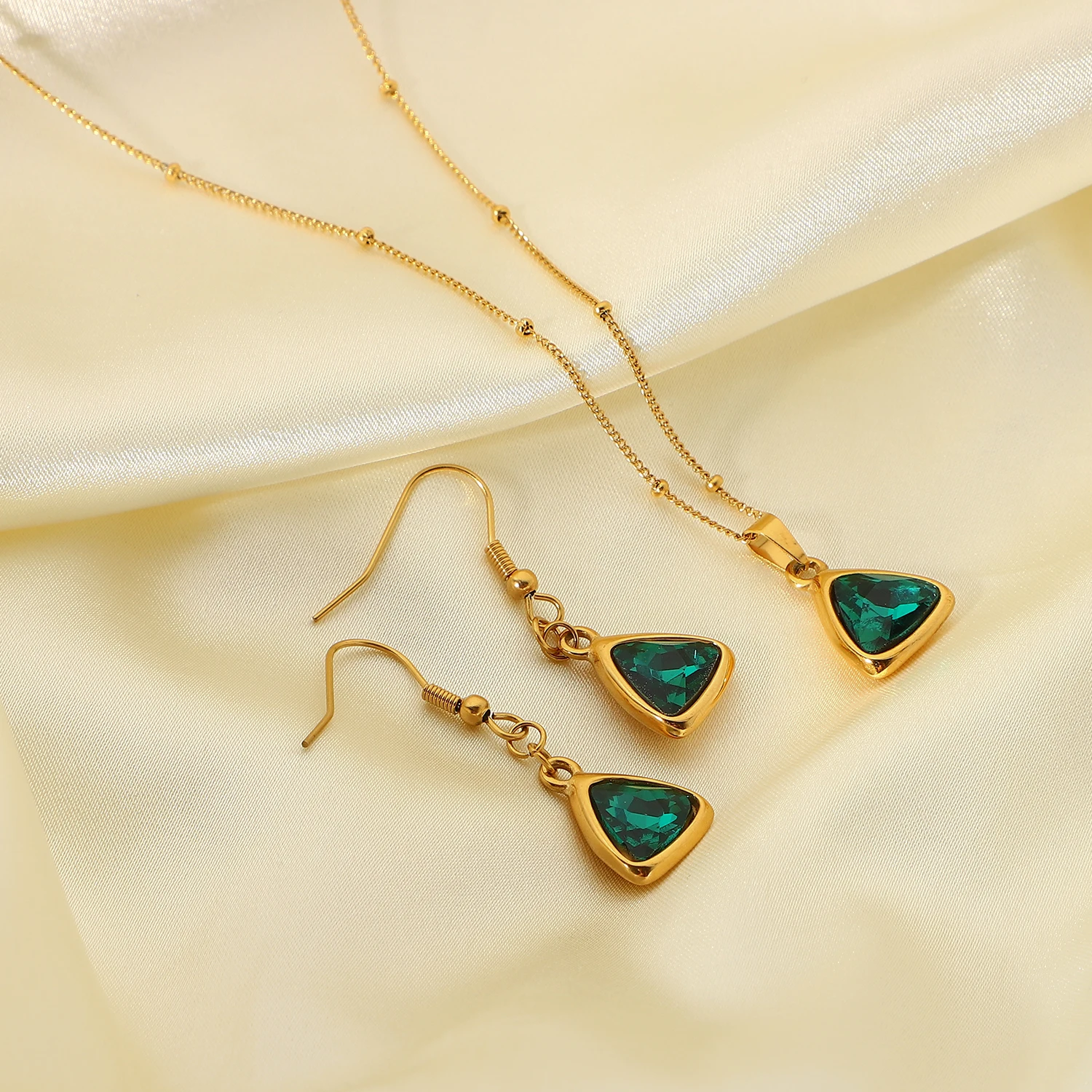 Женское Ожерелье с треугольным изумрудом, зеленые серьги-подвески геометрической формы, позолоченная цепочка до ключиц из нержавеющей стали 18 карат, недорогие ожерелья