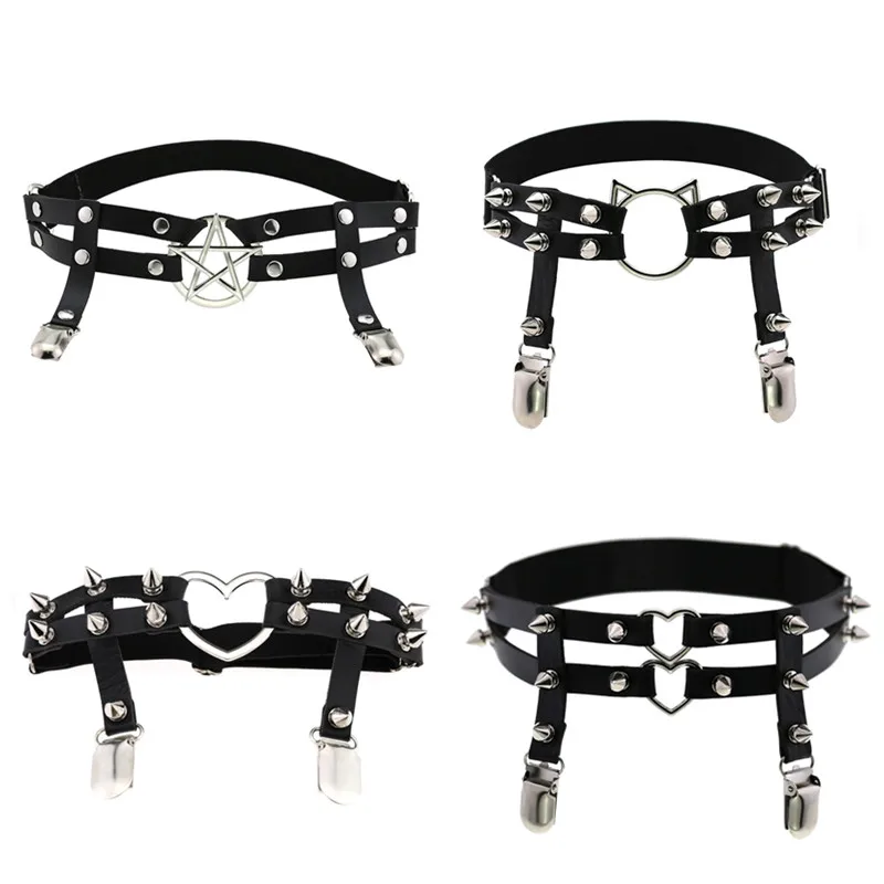 Подвязка Женская эластичная с заклепками, пикантный Пояс для чулок в форме сердца и кошки, украшение для ног, бандажный пояс из искусственной кожи, подарок для ночного клуба