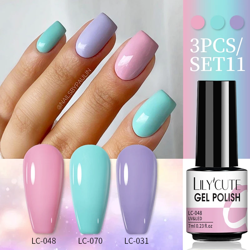 Набор гель-лаков для ногтей LILYCUTE, осенне-зимний Полупостоянный гибридный, для базового и топового покрытия, удаляемый замачиванием, СВЕТОДИОДНЫЙ УФ-гель для ногтей, 7 мл, 3 шт.