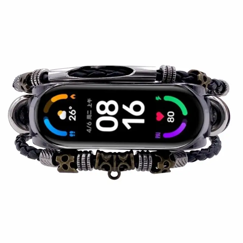 Ремешок ручной работы для Mi Band 5 6, сменный Браслет с металлической рамой для наручных часов Mi Band 5 6, Плетеный веревочный браслет