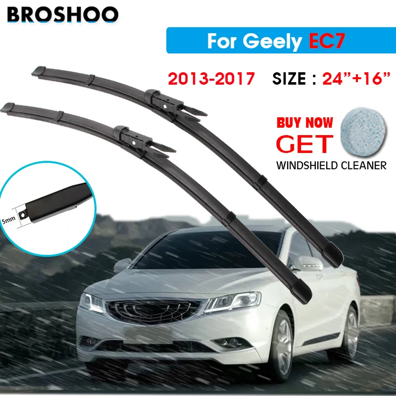 Автомобильная щетка стеклоочистителя для Geely EC7 24 "+ 16" 2013-2017 Авто ветровое стекло стеклоочистители для мытья окон подходит для зажима Модель автомобиля: Для GeelyEC7 Год: 2013-2017 Размеры предложение: 24 "и 16" Рычаги стеклоочистителя пополнения чернил: Натуральный каучук В наличии: Автомобиль оснащен зажимным кронштейном