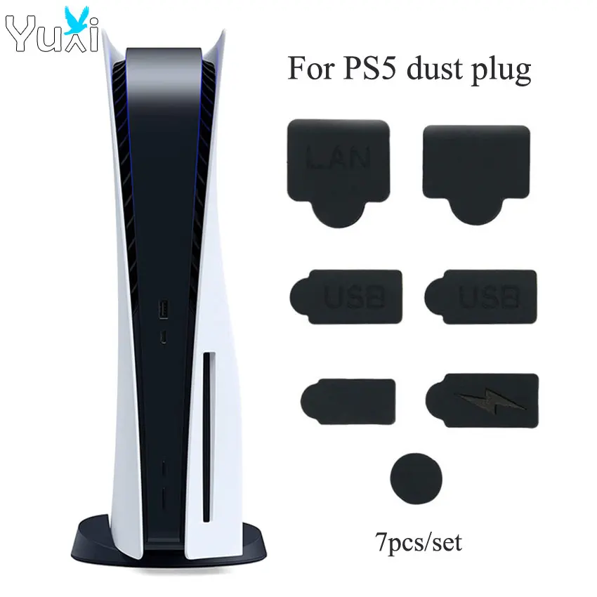 Комплект черных силиконовых пылезащитных заглушек YuXi 7 шт.компл., USB-интерфейс, пылезащитная крышка, пробка, Пылезащитная заглушка для Playstation 5 PS5