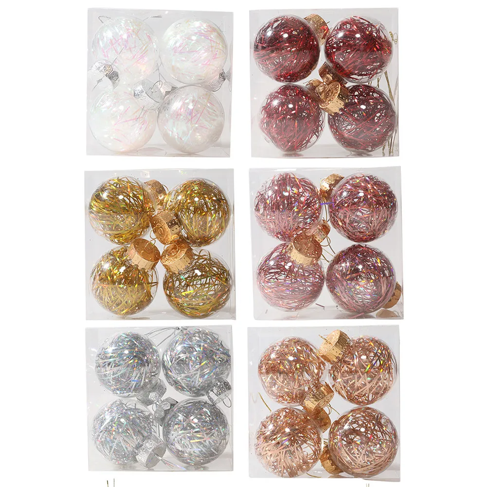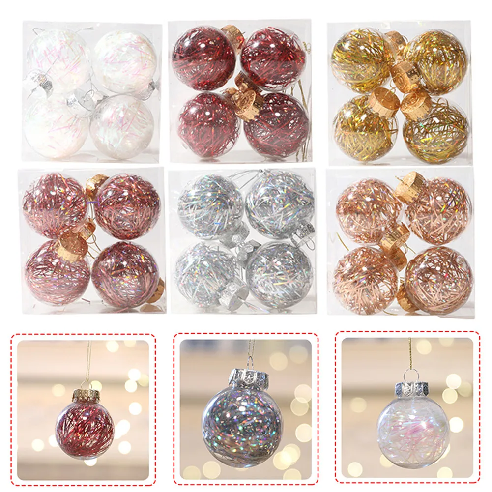 4 шт.коркор. прозрачные пластиковые рождественские шары, шёлковая трава, искусственный шар, подвесные украшения, украшение для рождественской елки