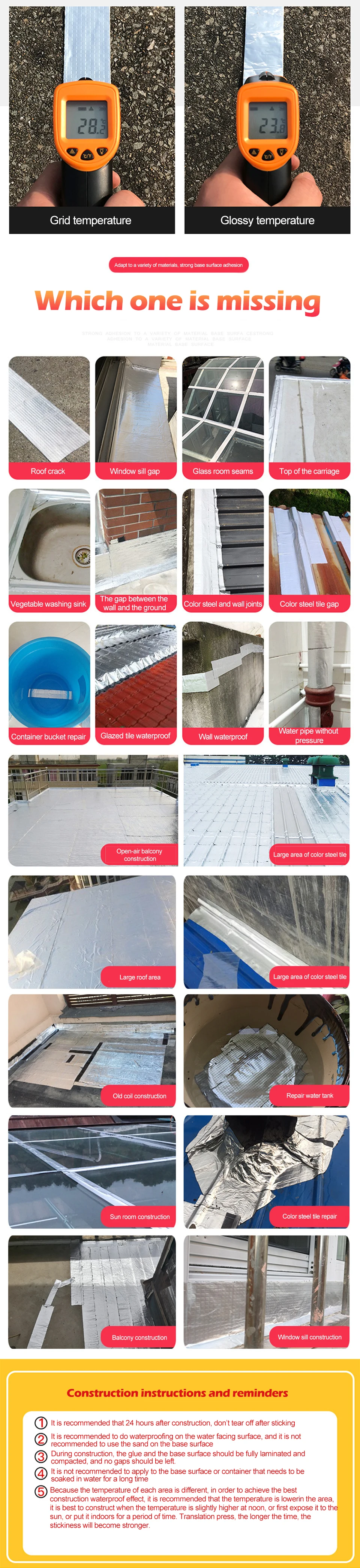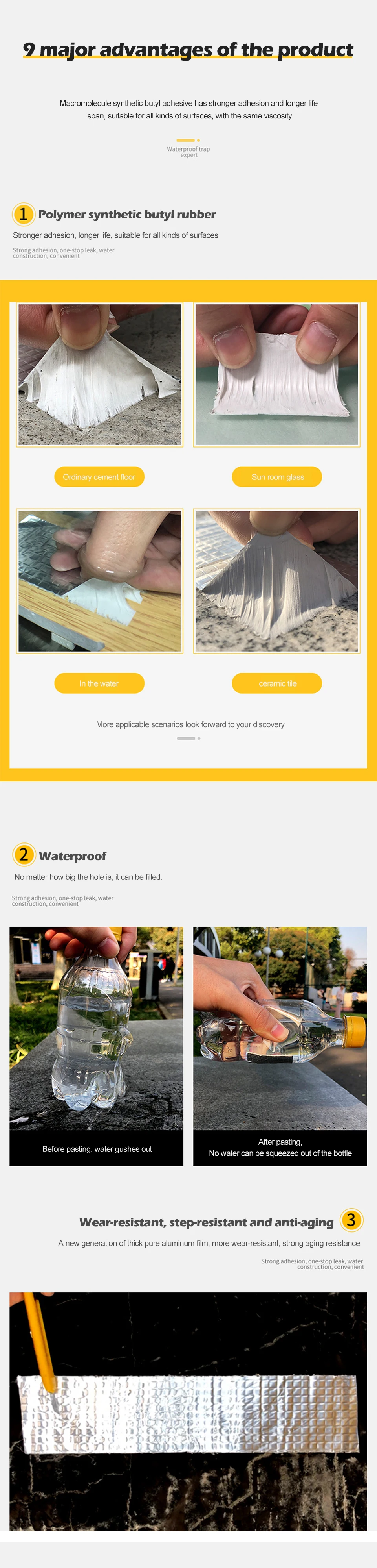 Термостойкая водонепроницаемая лента, алюминиевая фольга, утолщенная бутиловая лента, клейкая лента для ремонта стен, трещин, крыши