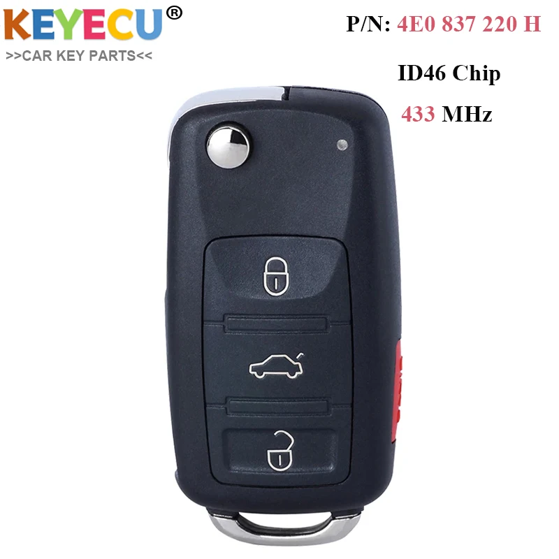 Дистанционный ключ-брелок KEYECU с 4 кнопками для Audi A8 4E0837220H 4E0 837 220H 433 МГц FSK PCF7946A HITAG 2 46 чип