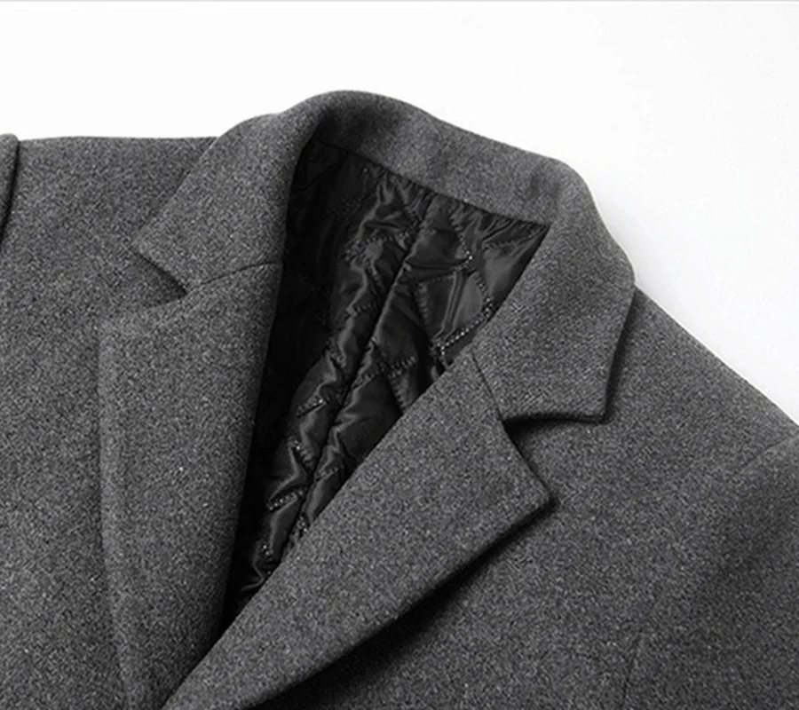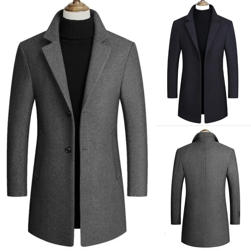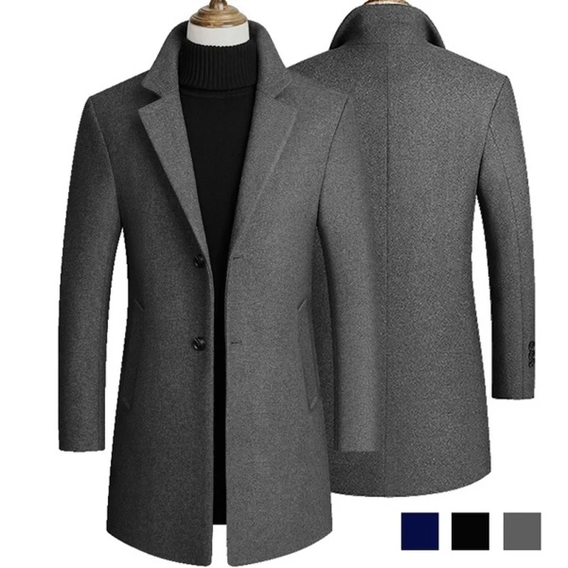 Мужской однобортный Тренч, однотонный жакет из шерсти высокого каче...
