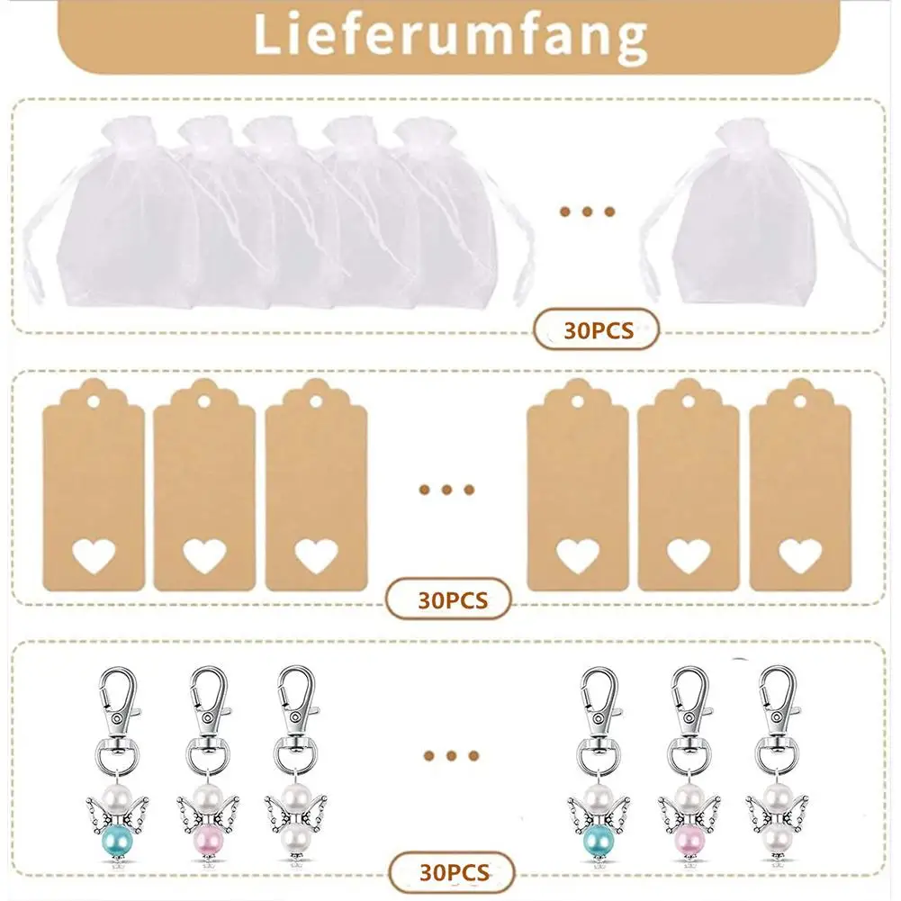 30 шт.компл., брелок с изображением ангела, подарочный набор из белой органзы, подарочные пакеты, спасибо, бирки из крафт-бумаги для будущей матери, свадьбы, дня рождения