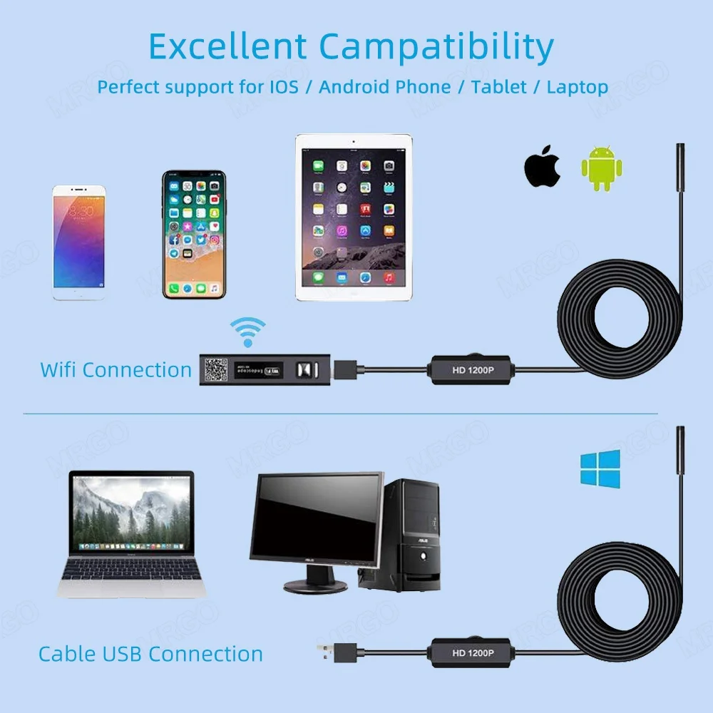 3 в 1 Тип C 1200P HD 8mmEndoscope + WIFI