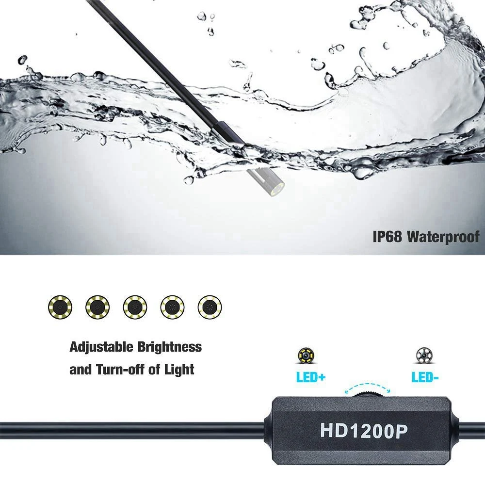 Водонепроницаемая камера IP68Длинная длина кабеля, 4 различных длины кабелей, доступных для вас на выбор1200P HD камера, прозрачная и простая в установке и использовании.С 8 регулируемых белых светодиодный свет, яркий достаточно для использования в темных пятенС тремя видами usb-порта: Micro USB, Type-C и USB.