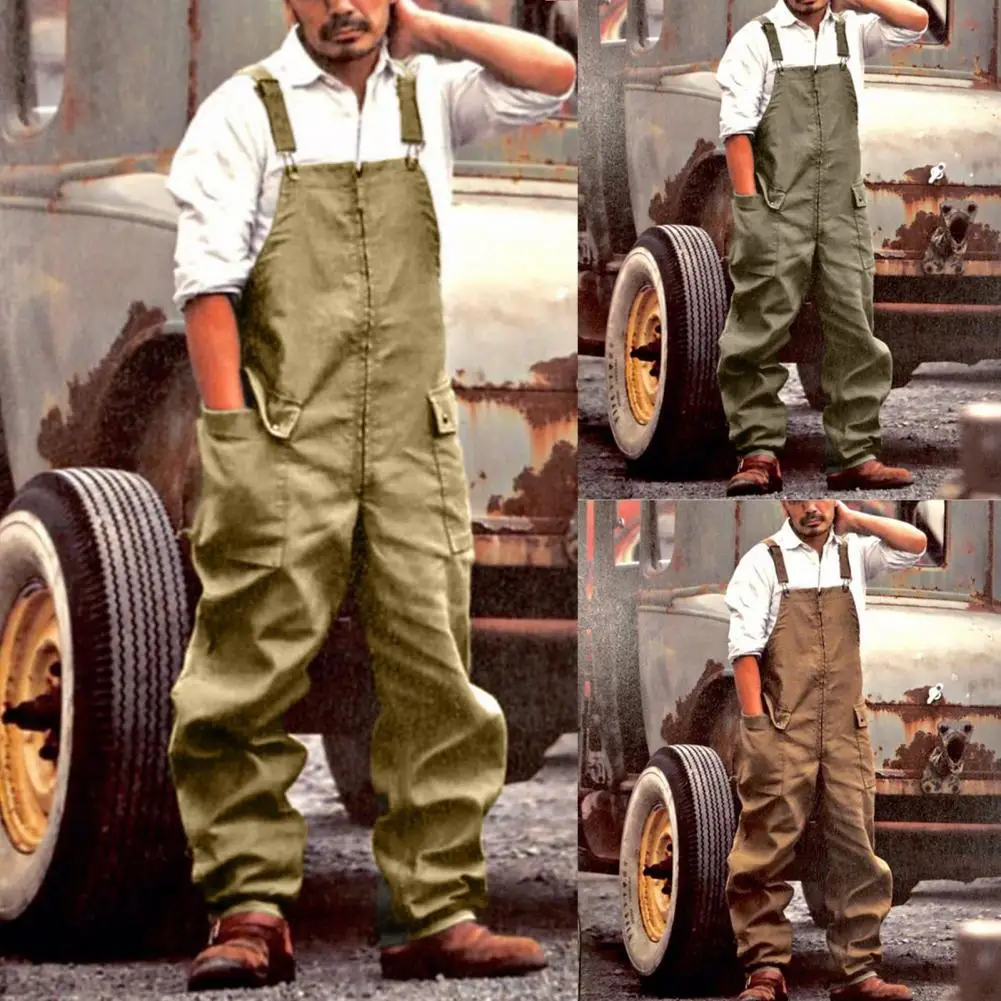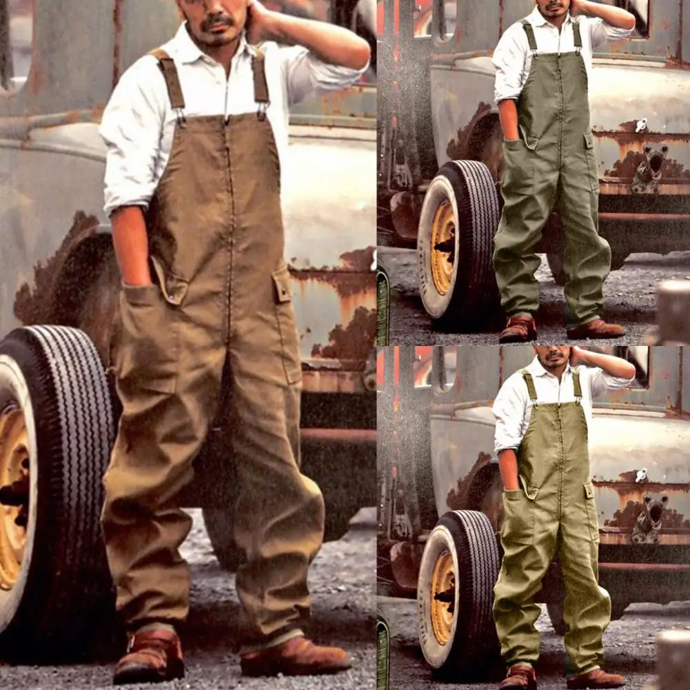 Комбинезон мужской, однотонный, свободный, с большими карманами, длинные брюки, уличная одежда