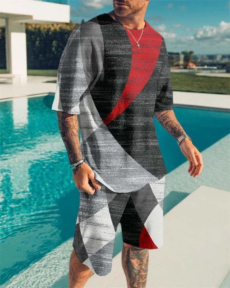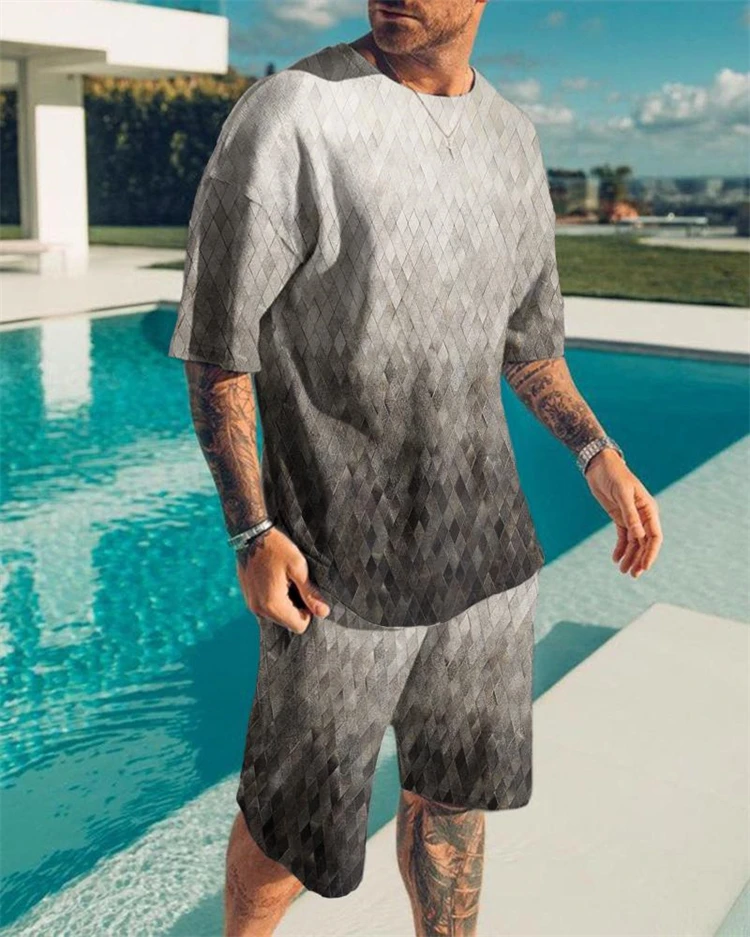 Мужской костюм с круглым вырезом, футболка с короткими рукавами и 3...