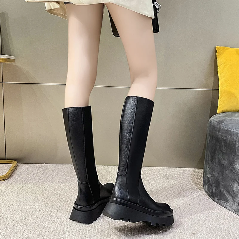 Женские сапоги до колена, зимние мотоциклетные сапоги на танкетке, ...