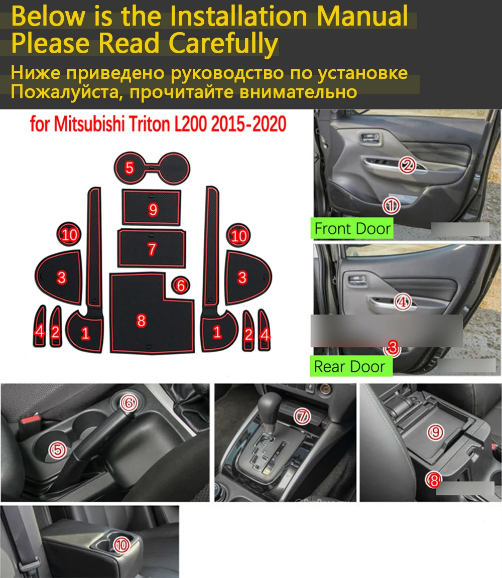 Дверной коврик для Mitsubishi L200 KJ Triton Strada Strakar barbaran Fiat Fullback RAM 1200 Противоскользящий резиновый слот для ворот коврик для чашки
