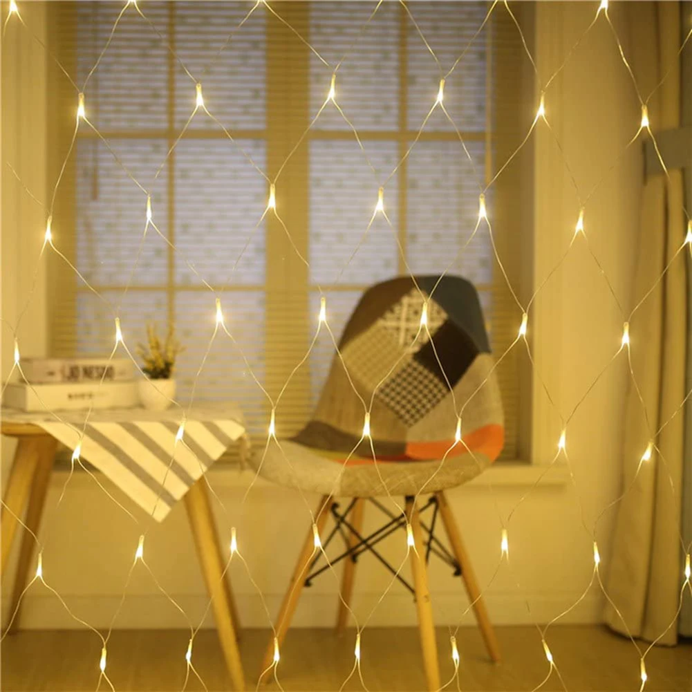 Светодиодная сетчатая Гирлянда-занавеска, Рождественская гирлянда для ЕССША, свадьбы, Нового года, уличное украшение для сада, 1,5x1,5 м, 96 светодиодов