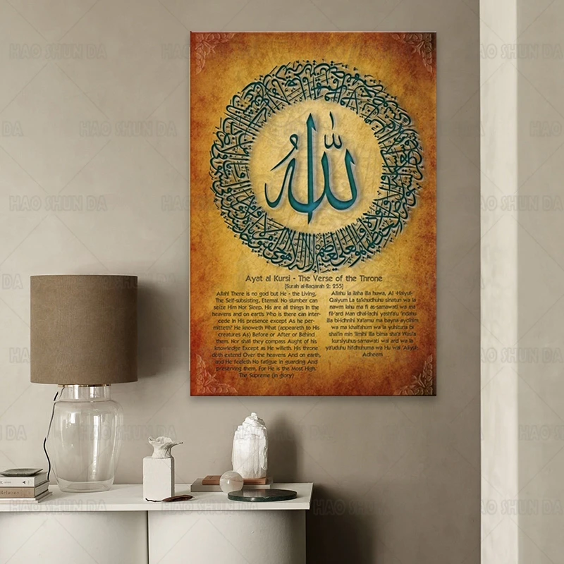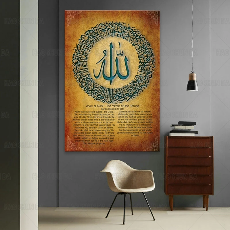 Ayat Al Kursi исламский настенный художественный холст, ВИНТАЖНЫЙ ПЛАКАТ, холст, живопись, рамка, холст, современное искусство, настенные картины, плакаты и принты