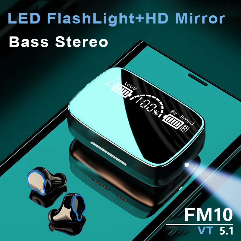 Беспроводные наушники TWS Bluetooth-совместимые наушники 5,1 спортивная водонепроницаемая гарнитура с сенсорным управлением зарядная коробка с фонариком светодиодный