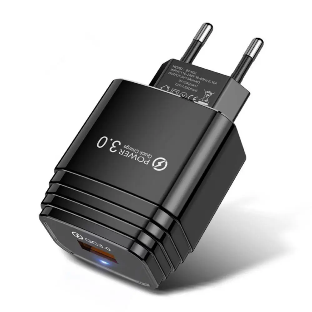 Мобильный телефон зарядное устройство с американскойевропейской вилкой, 18 Вт, одиночный USB QC3.0, сетевое зарядное устройство для быстрой зарядки, адаптер питания для телефона