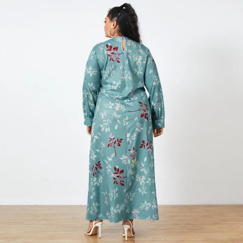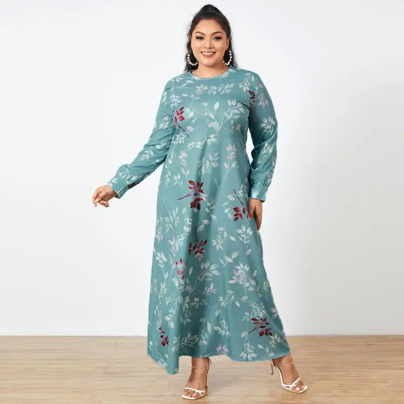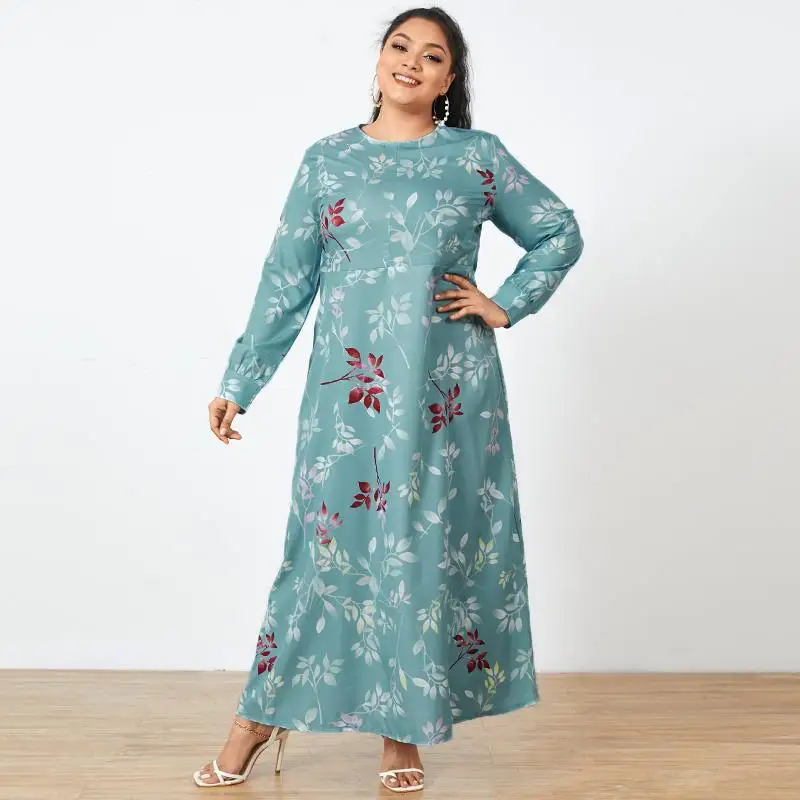 Женское мусульманское платье с длинным рукавом, с цветочным принтом