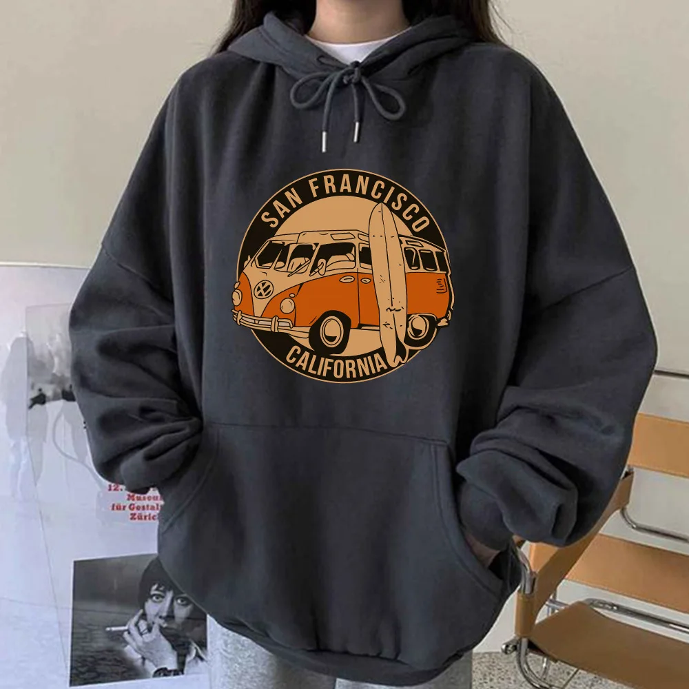 Женские бархатные толстовки больших размеров с капюшоном в стиле Сан-Франсиско, California Y2k, осенние женские толстовки с капюшоном, Теплый Женский Топ с круглым вырезом и принтом