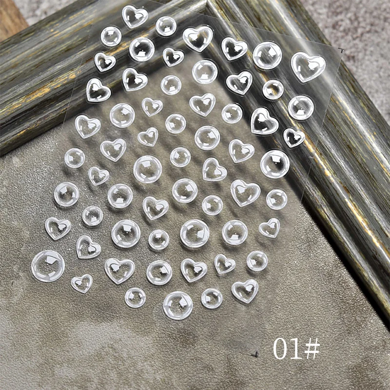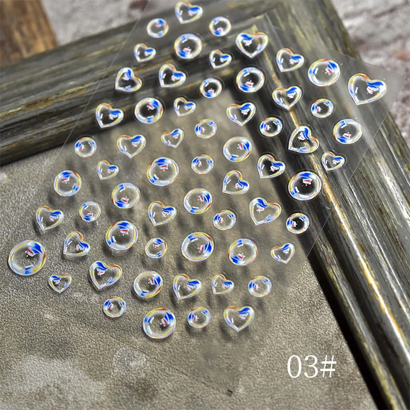 Переводные 3D-Наклейки для ногтей в виде капли воды, прозрачные слайдеры в богемном стиле, серия белых сердец, наклейки для ногтевого дизайна, украшения
