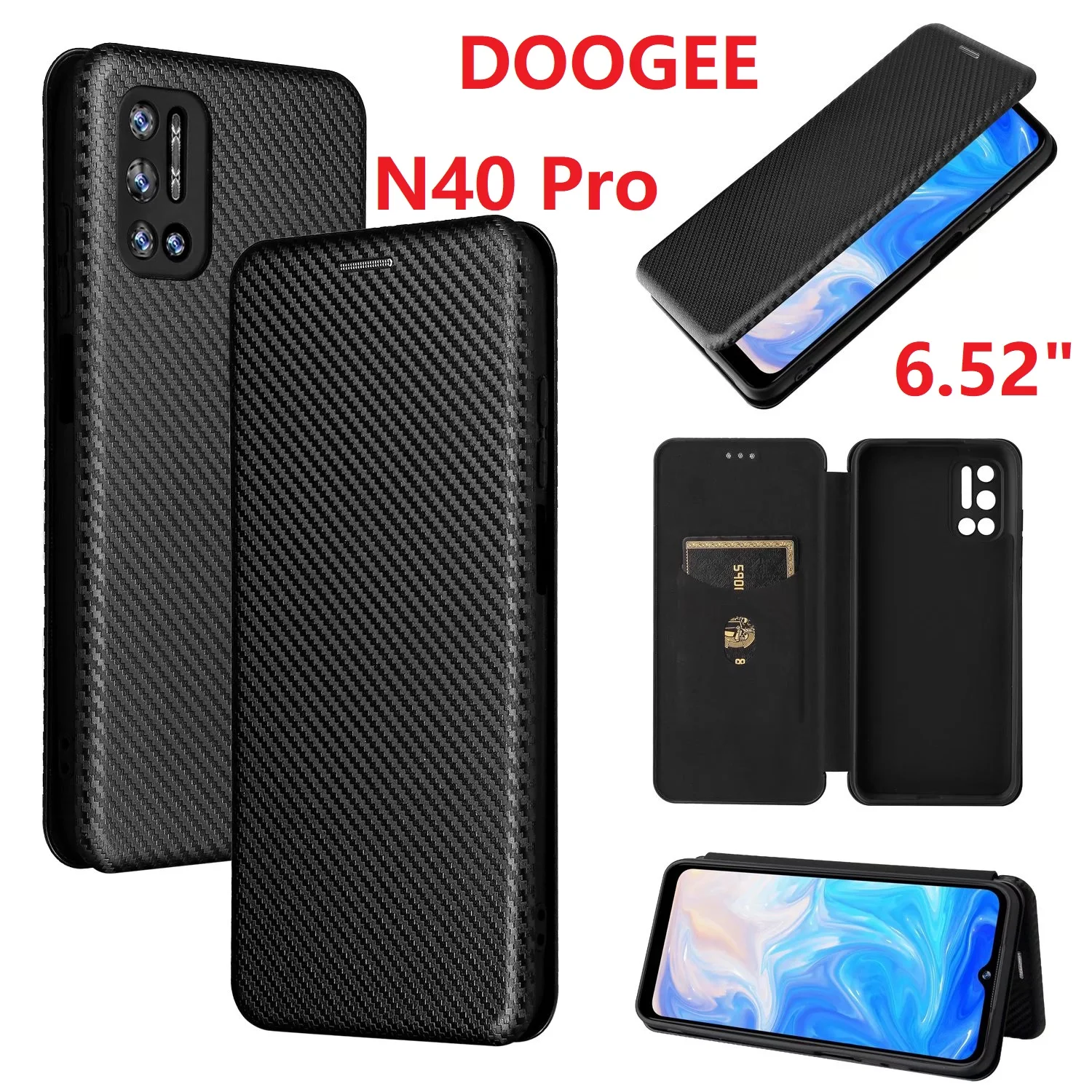 Чехол из углеродного волокна для DOOGEE N40 Pro с магнитной подставкой и откидной крышкой, защитный чехол-кошелек из искусственной кожи