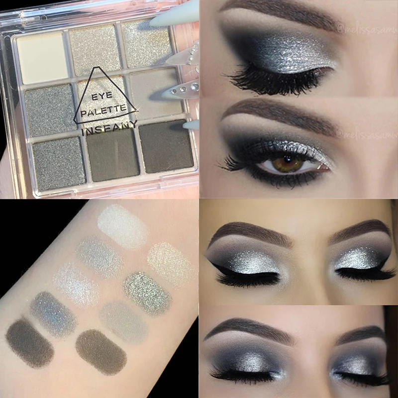 Палетка теней для век, 9 цветов, серая, Дымчатая, матовая, с блестками, черная, тени для век дымчатые пигментов для век, Палетка для макияжа
