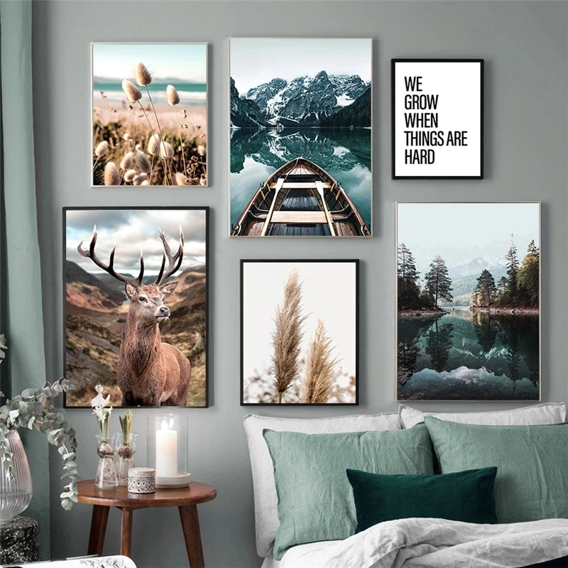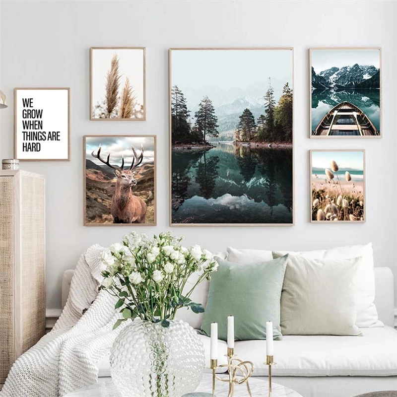 Пейзаж, картина, домашний декор, настенная Картина на холсте, Современная Скандинавская цитата, цветок с оленем и принтами для гостиной