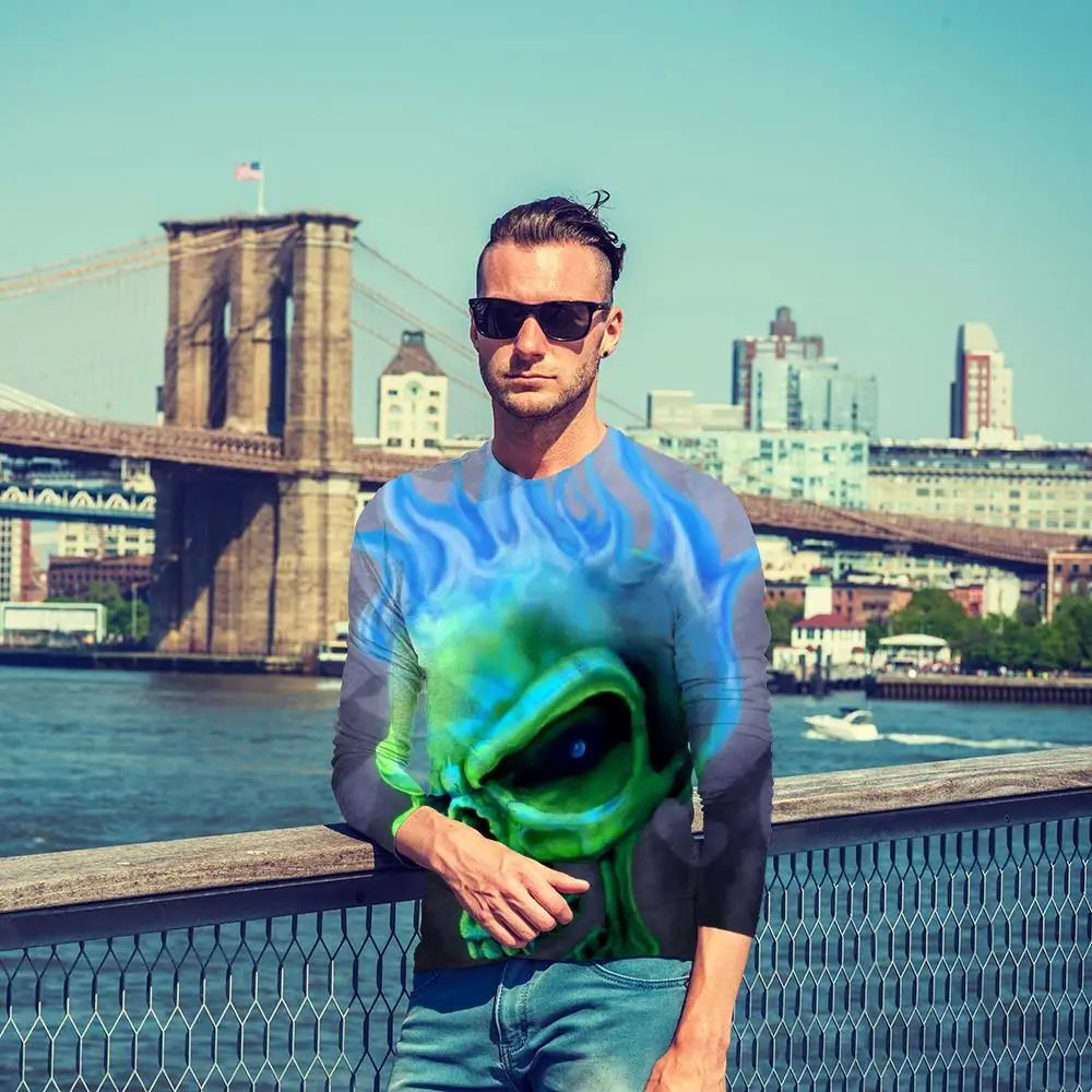 Футболка мужская с длинным рукавом KYKU, летняя футболка с 3D-принтом
