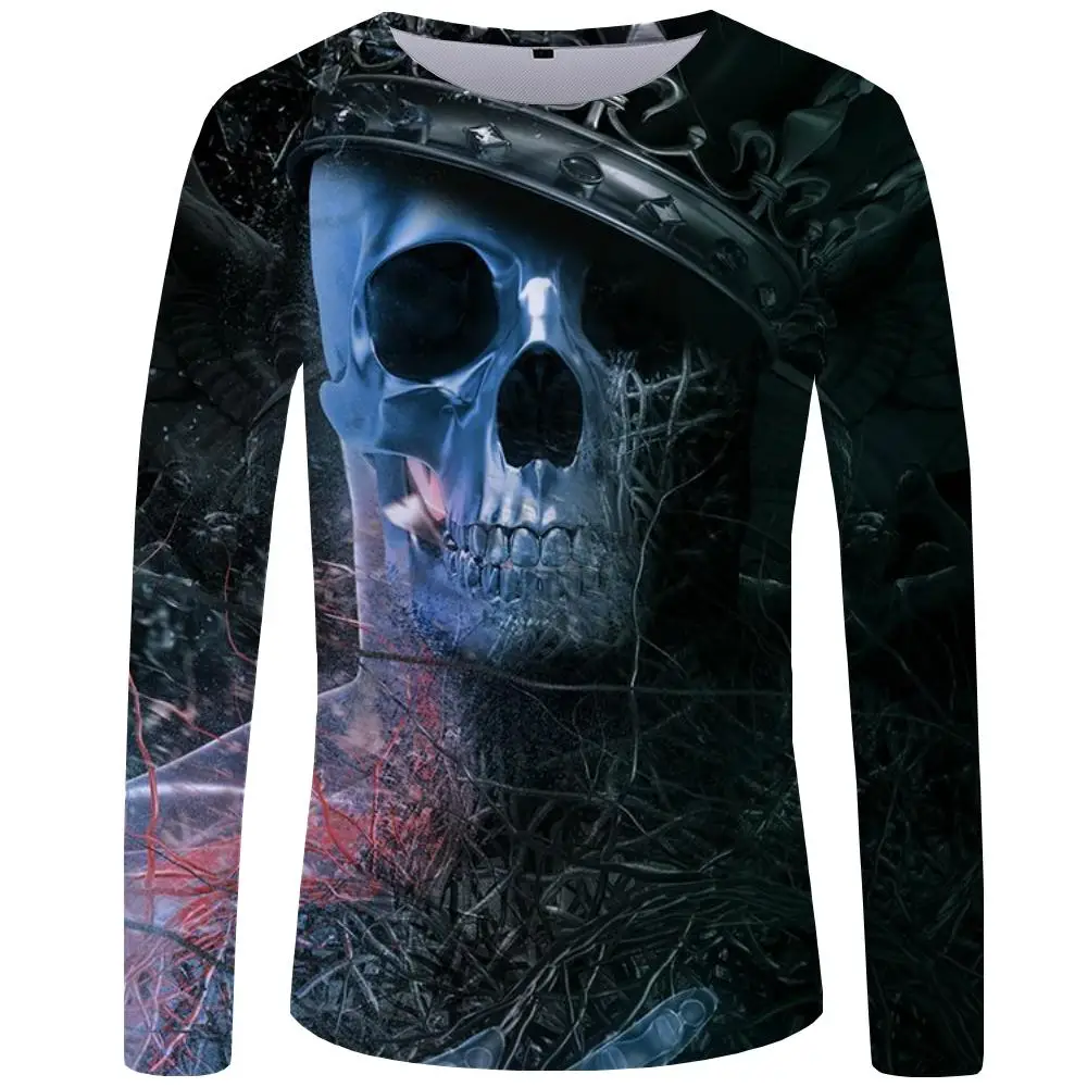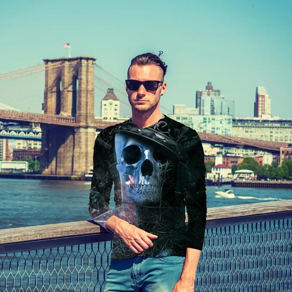 Мужская футболка KYKU, черная футболка с длинным рукавом и 3D-принт...